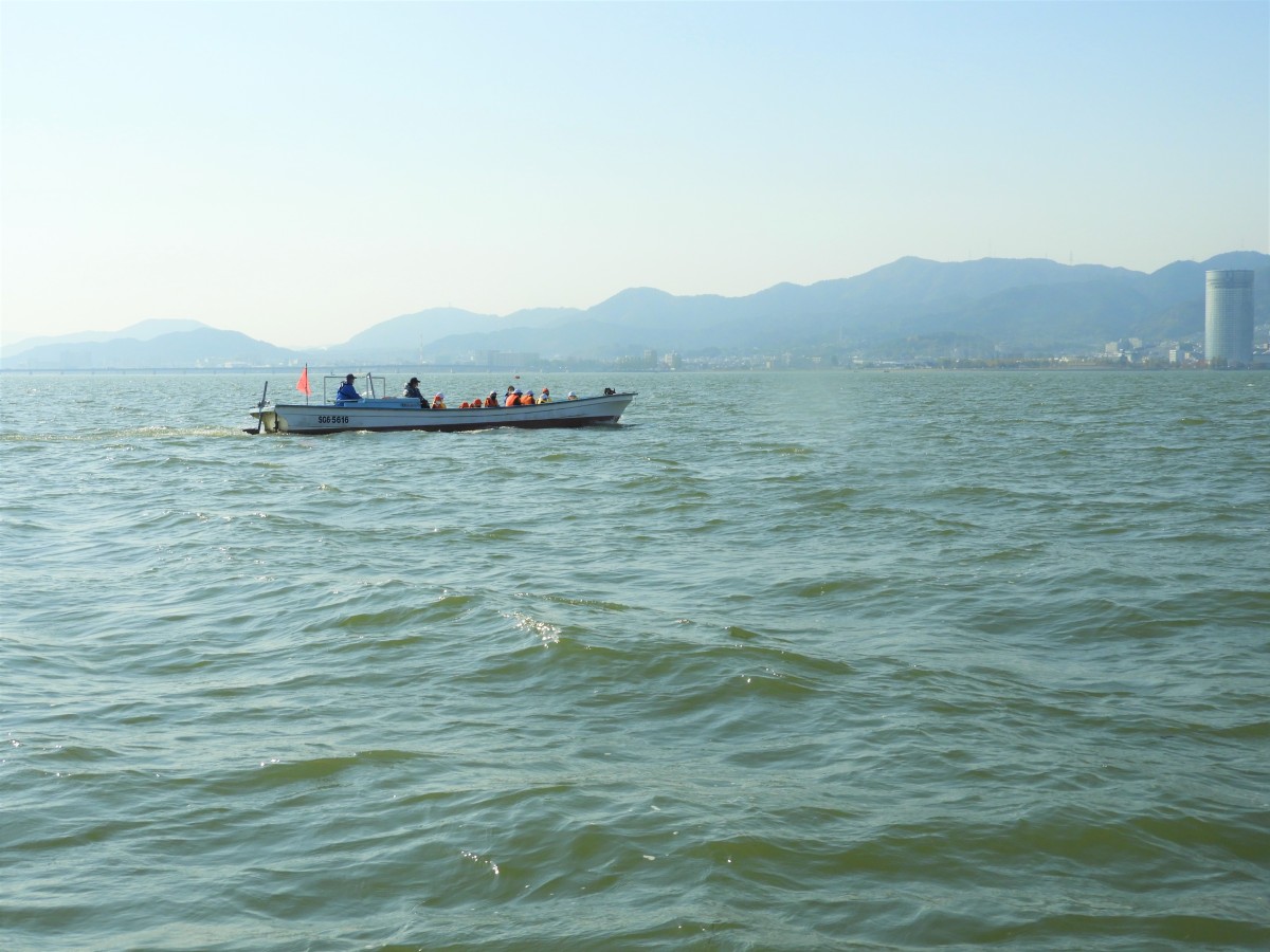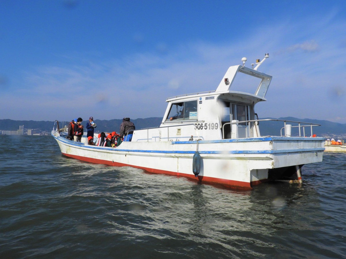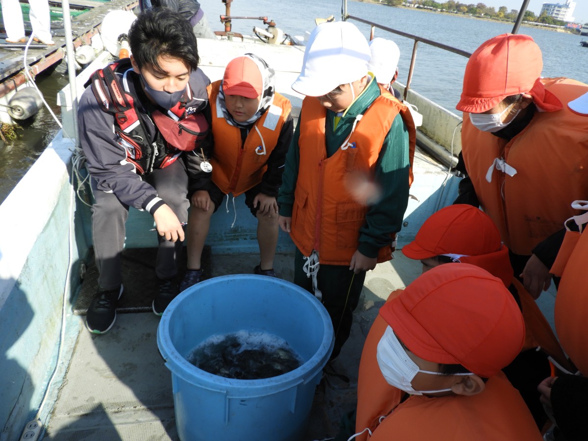 山田漁業共同組合の方が用意してくださったフナ約300kgを、子どもたちは「元気に泳いでいくんだよ~!」「ダンスしているみたいだね!」など声をかけながら、びわ湖に放流していました。船に乗るまでは心配そうにしていた子も乗ってみるととても楽しかったと話していました。
