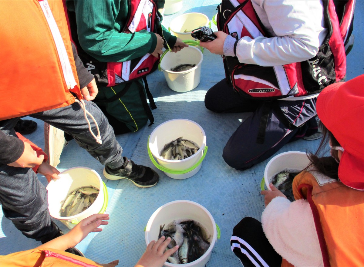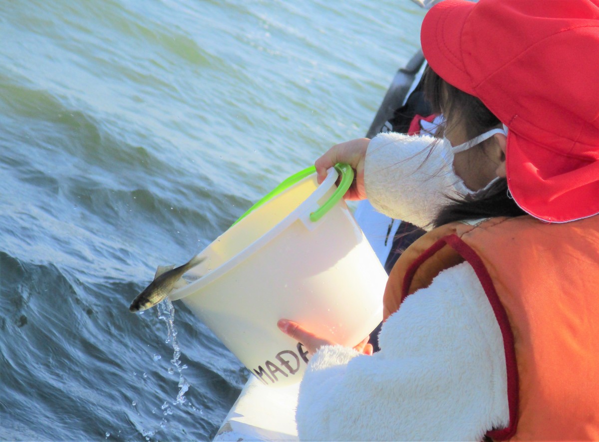 例年は、放流当日に説明を受け、初めて見たフナの稚魚を放流されますが、今年度は事前に勉強ができ、自分たちがびわ湖に放流するフナをゆっくり観察できたことは、子どもたちにとっても貴重な時間だったのではないかなと思いました。今日放流したフナも元気に大きくなってほしいものです。