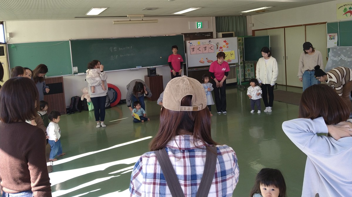 すくすくランドではすっかりお馴染みの杉江のり子先生をお迎えし、軽快なリズムに合わせて親子での触れ合い遊びをたっぷり楽しみました![]()