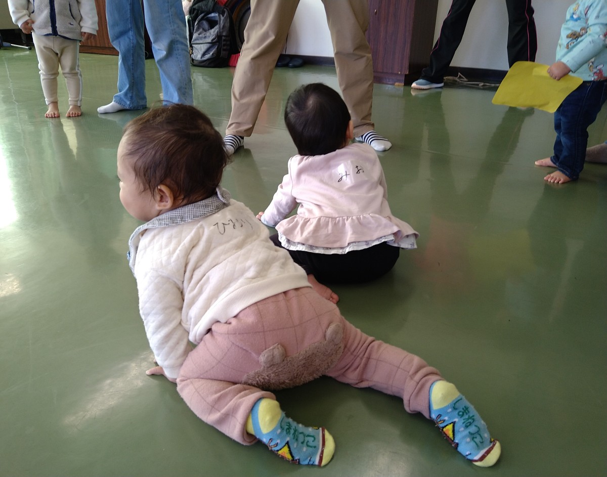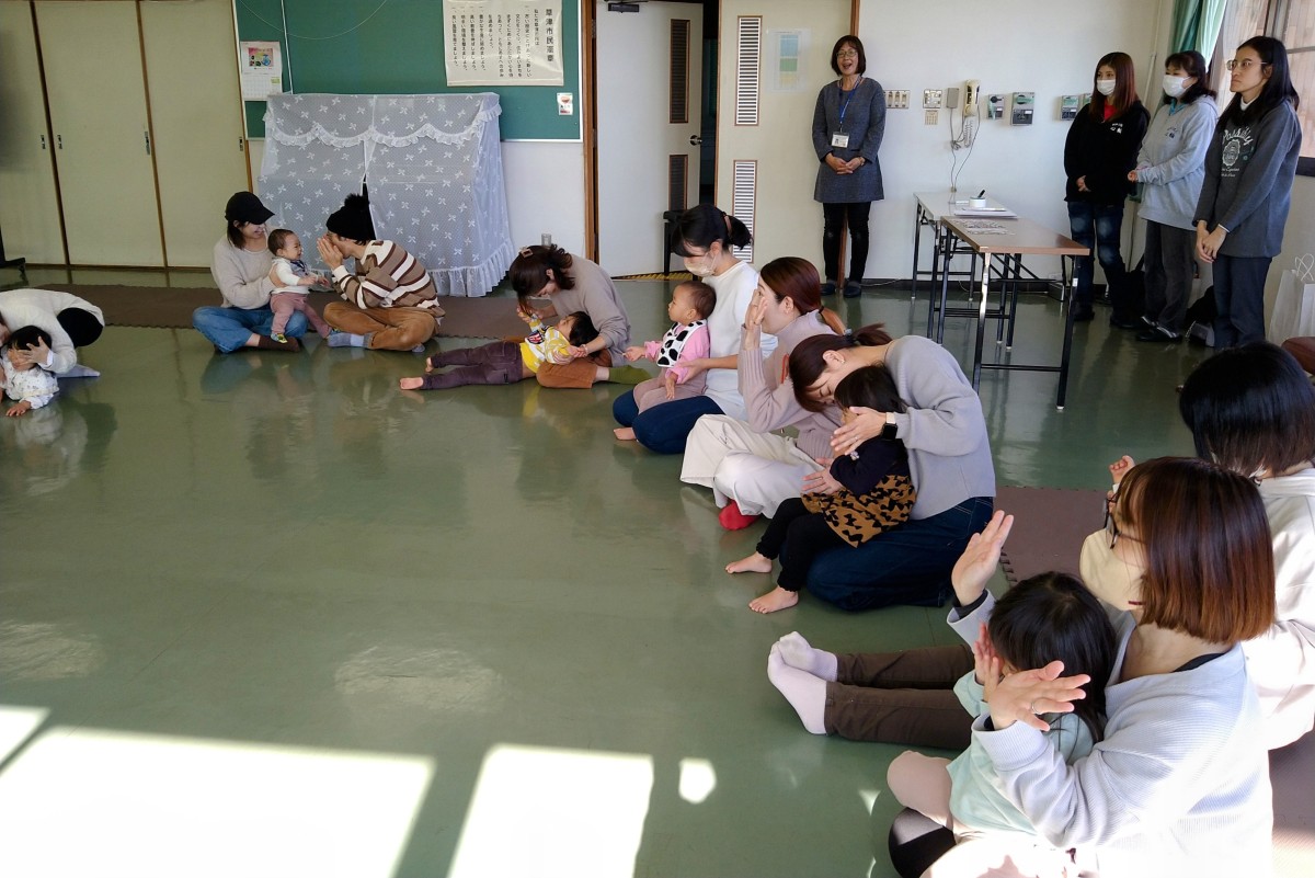 少し早いリズムに合わせ膝の上で”ぴょんぴょん”や向かい合っての”いないいないバー”など親子の触れあい遊びは子どもの気持ちを落ち着かせてくれますね。