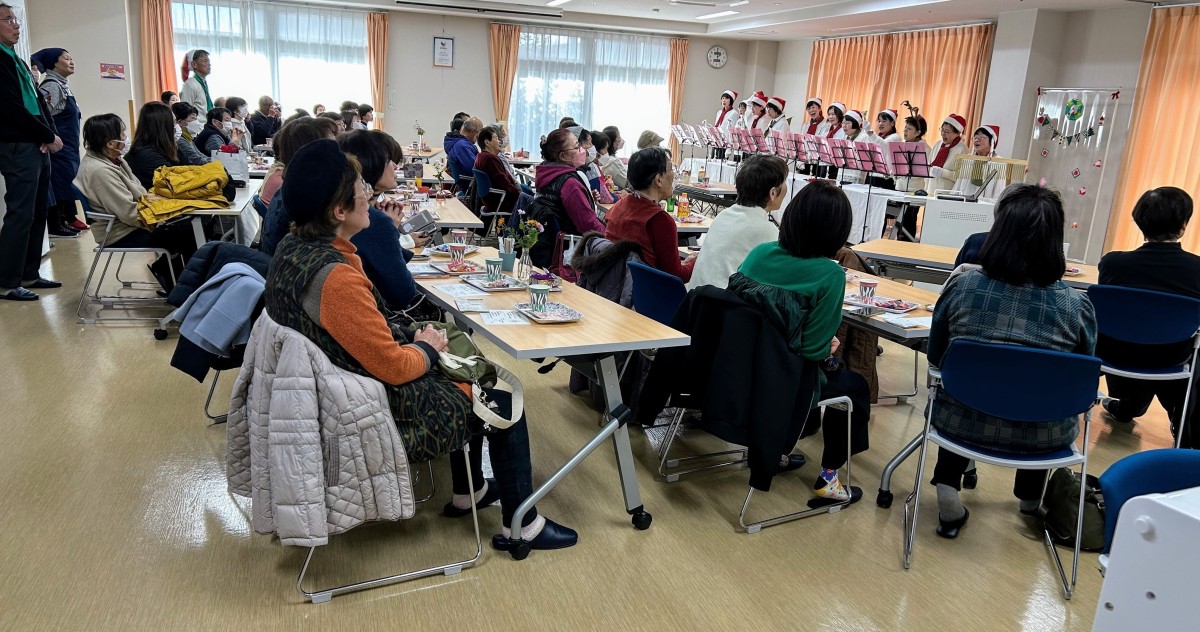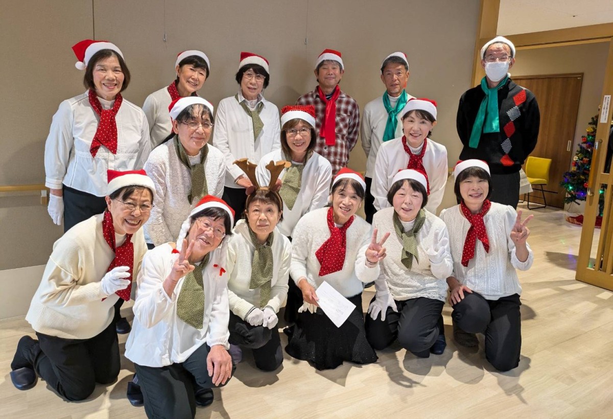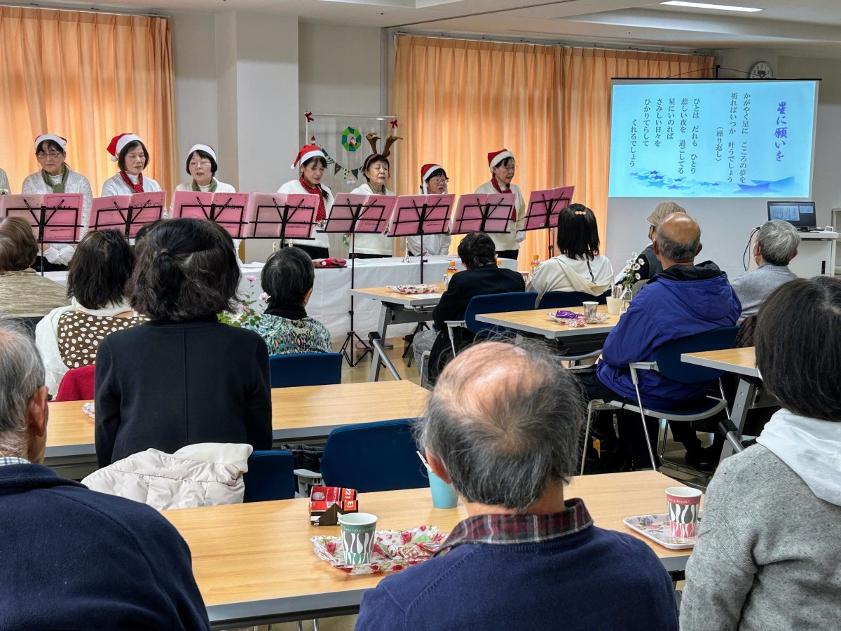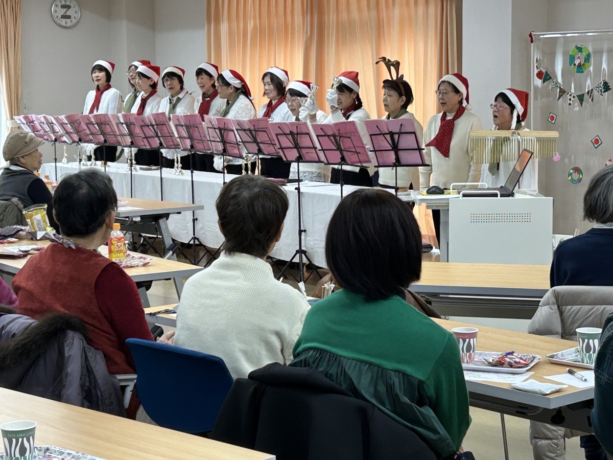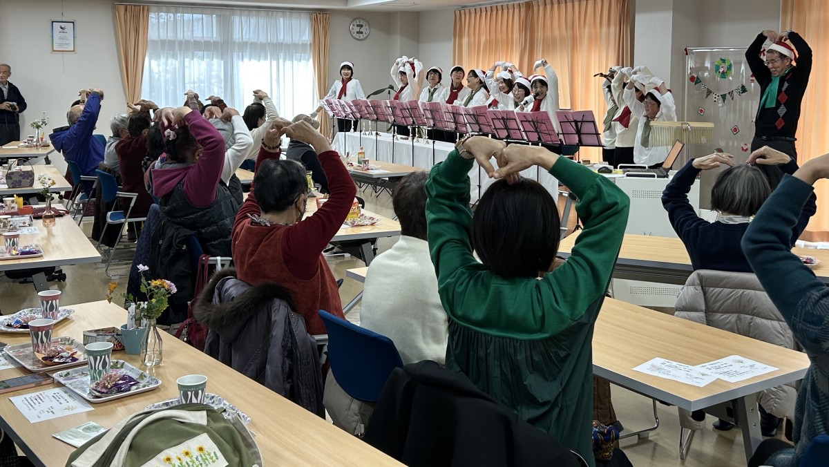 「たき火」の曲を皮切りに「きらきら星」「ジングルベル」や「星に願いを」といったクリスマスソングの演奏もあり、ベルやツリーチャイムの優しく心に響く音色に「やっぱりクリスマスはベルやね~」と会場の皆さんは口ずさみながら聞き入っておられました![]()