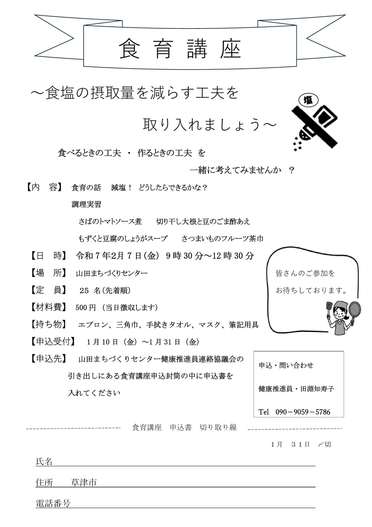 食育講座「~食塩の摂取量を減らす工夫を取り入れましょう~」募集案内