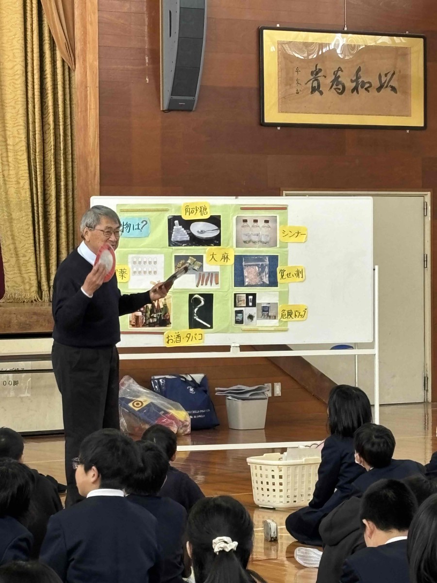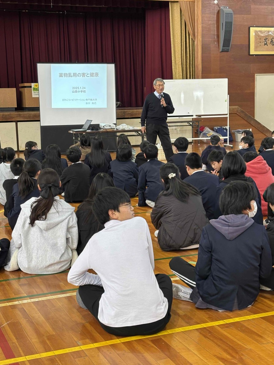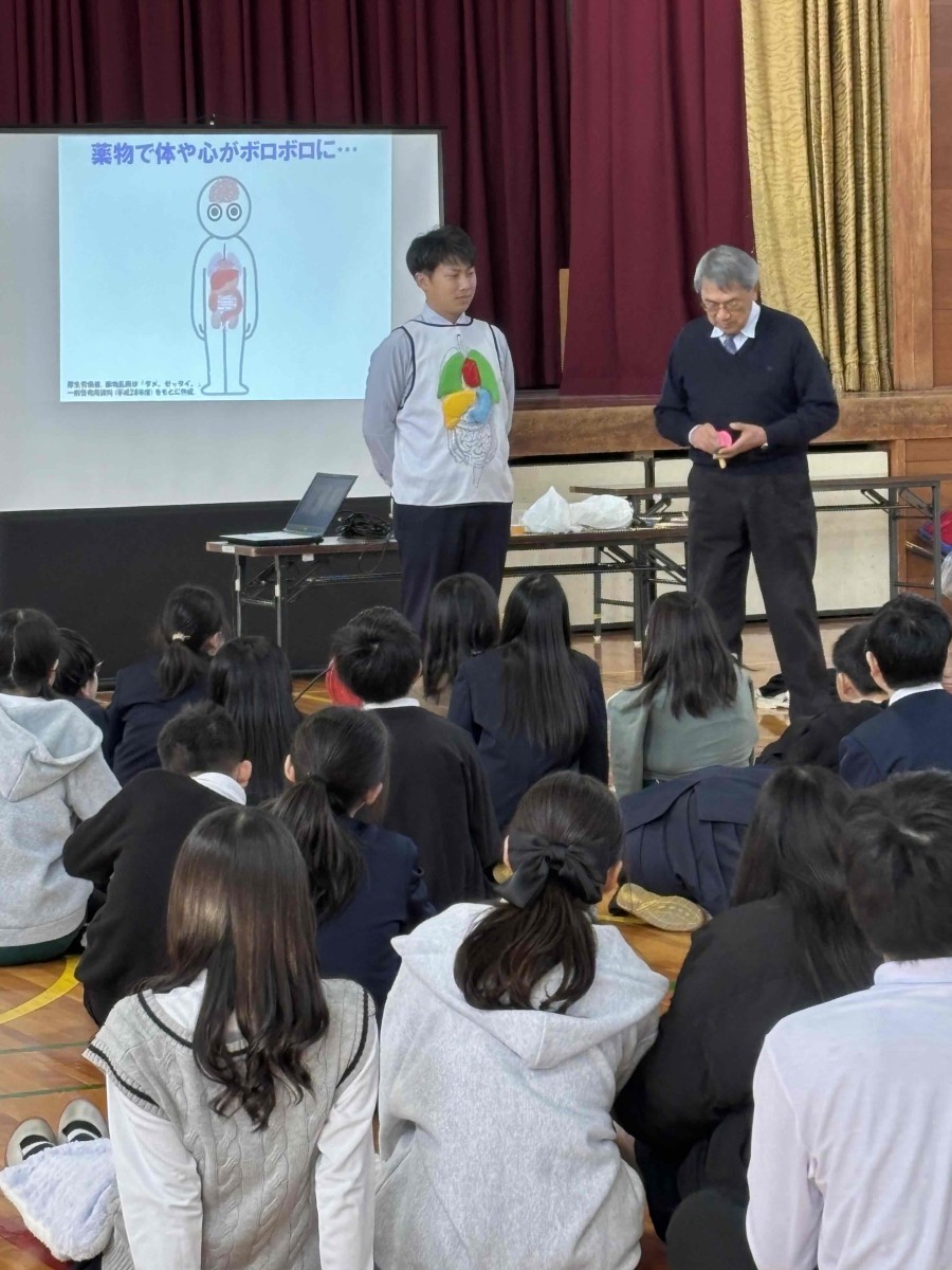 同日、授業参観がありました。6年生は谷川先生から「薬物乱用の害と健康」について教えていただきました。多くの保護者の方々とともに大切なお話しを聞くことができました。
