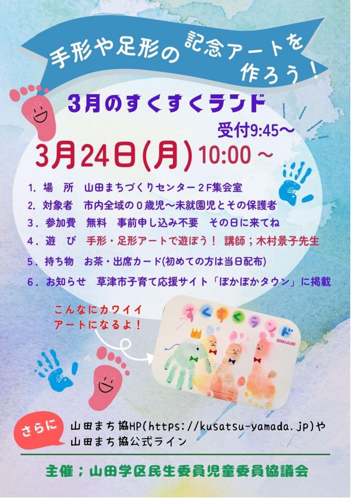 3月のすくすくランドは「手形や足形の記念アートを作ろう!」です![]()