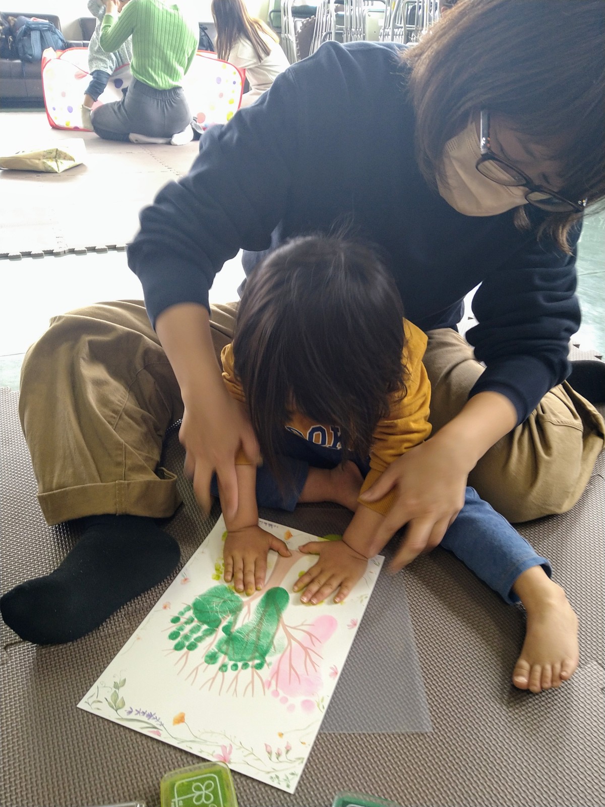 木村先生が準備してくださった”春いっぱいの台紙”に、可愛い子ども達の「手形や足形」の花々がいっぱい咲いていきます。
