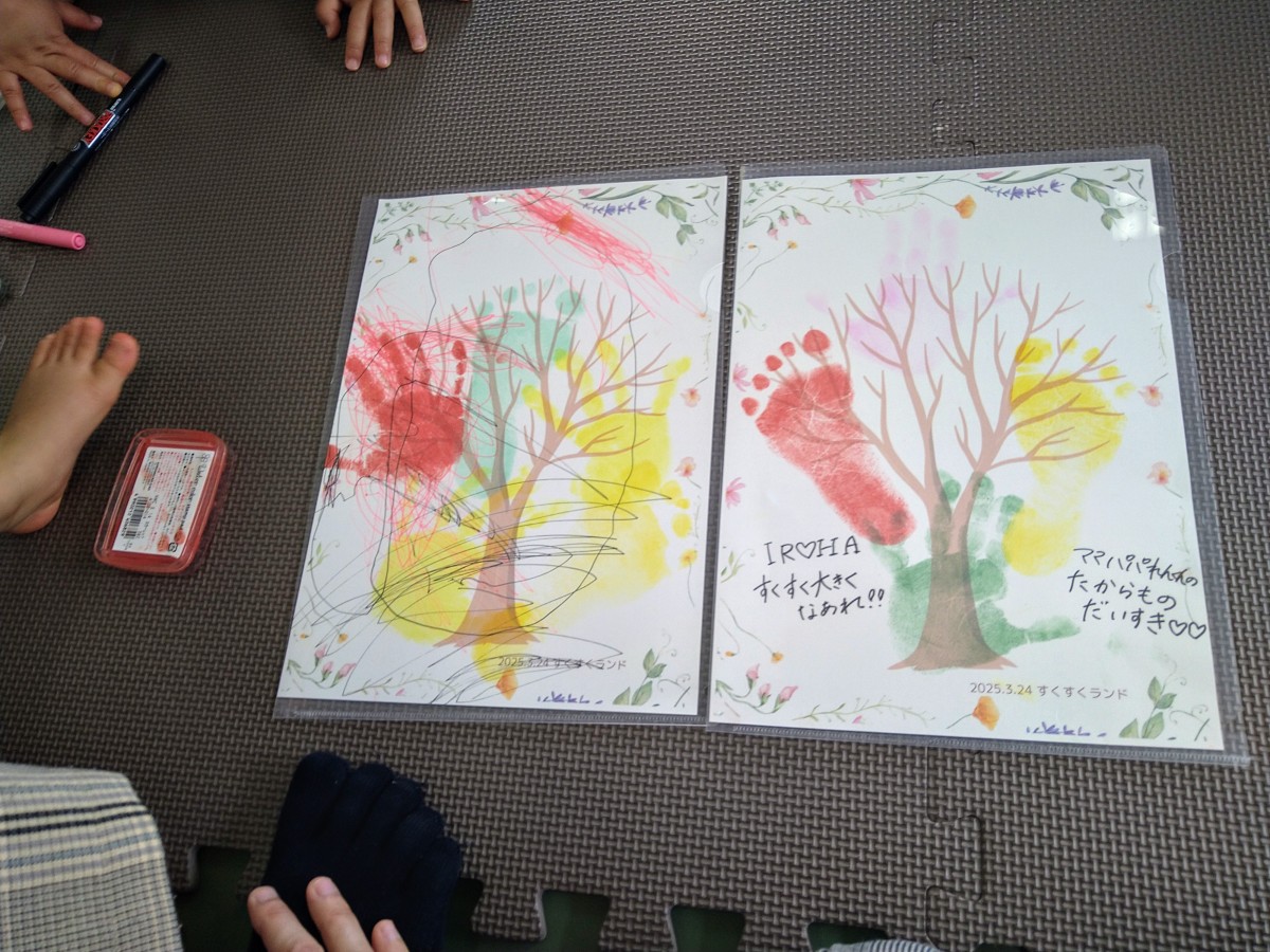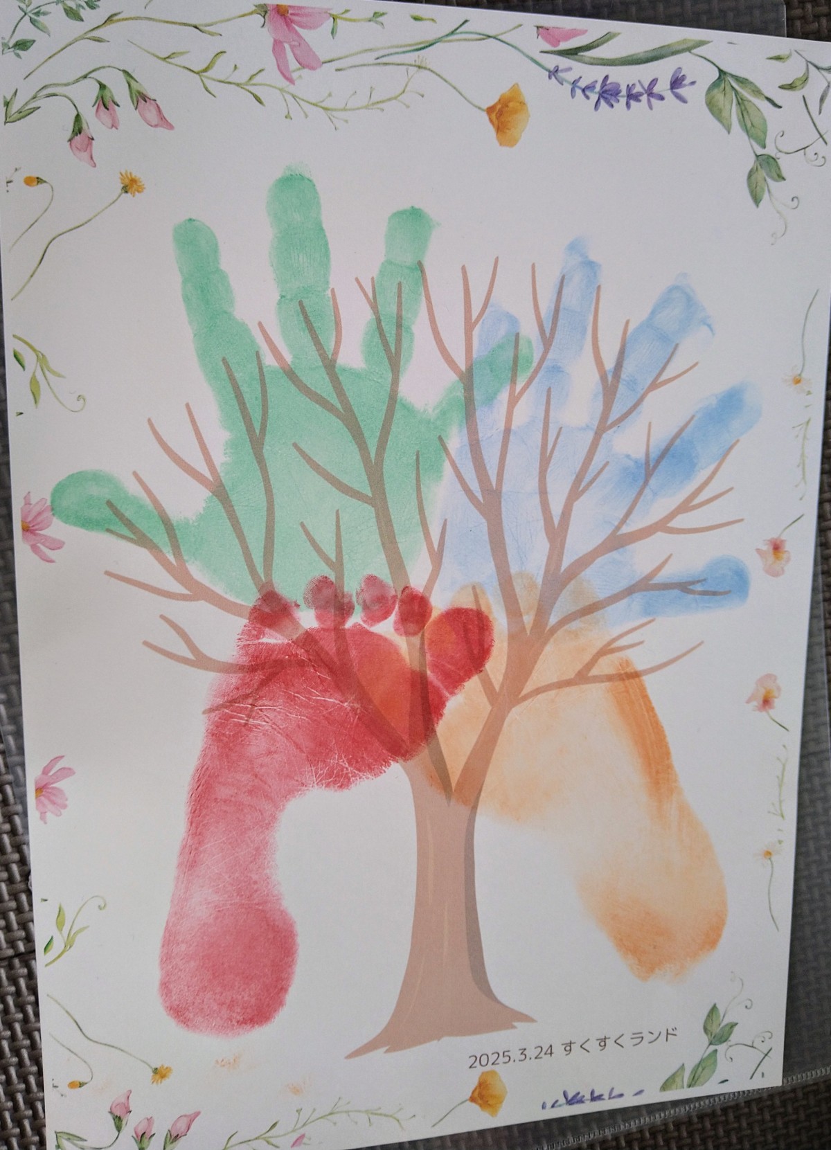 ママからのメッセージが添えられた愛情たっぷりのまさに記念のアートもできました![]()