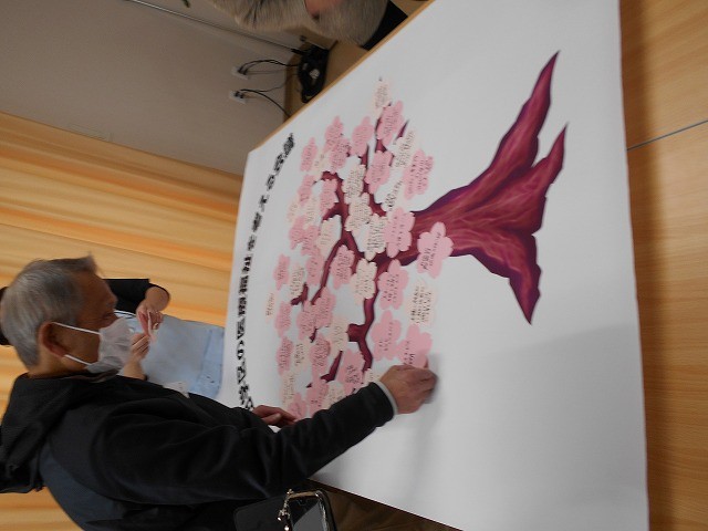 最後に参加者全員で桜の花びらに感想とこれからの課題や思いを書き綴り写真のような満開の桜の木になりました。