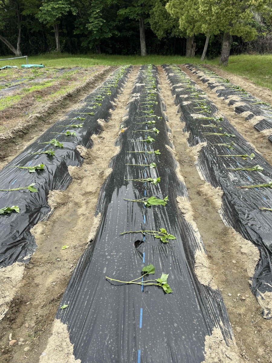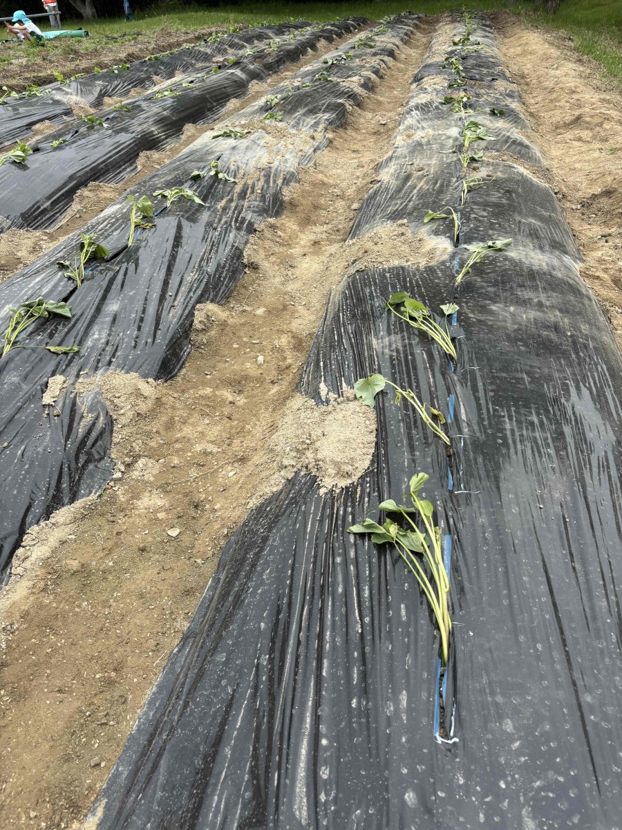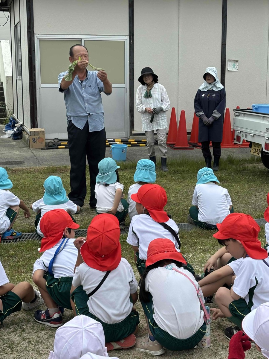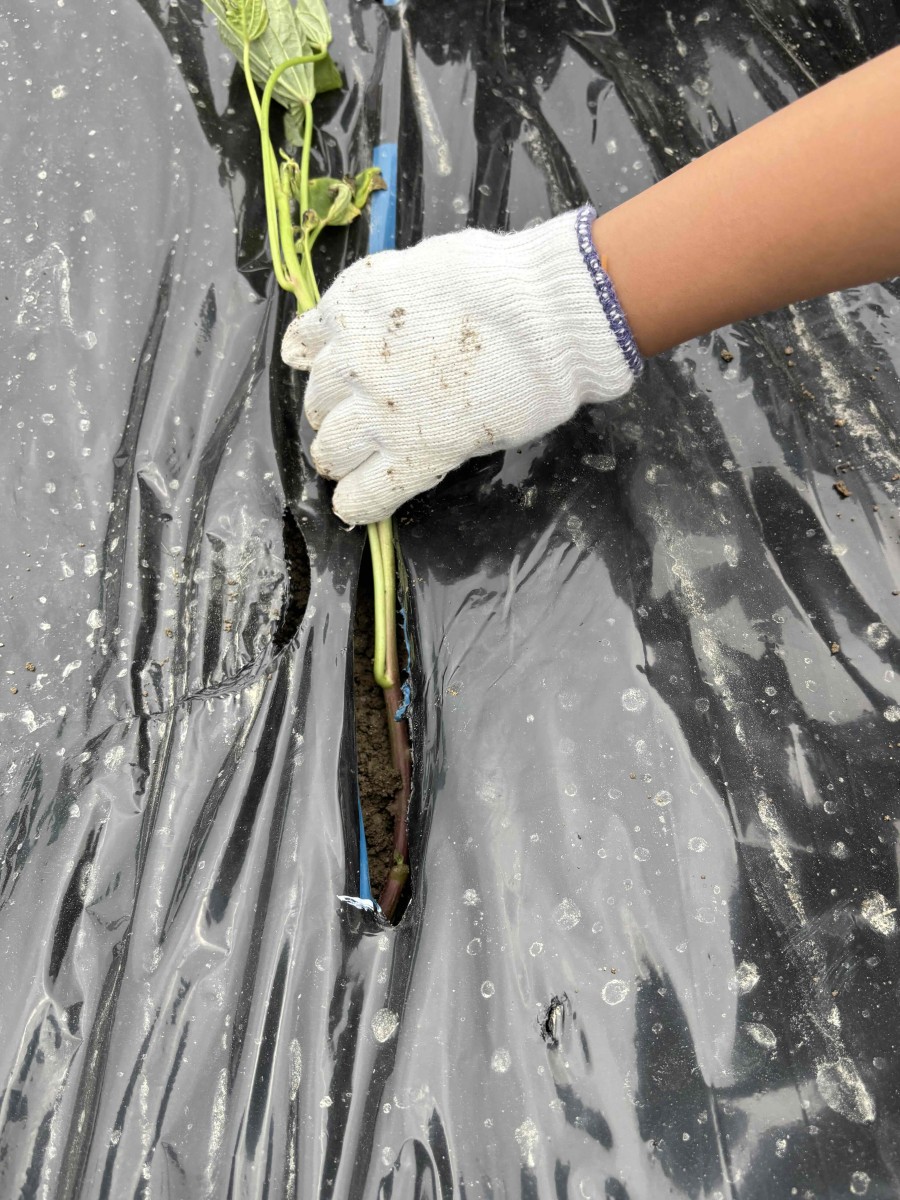5月21日(水)1年生が山田こども園年長児さん達と一緒にさつまいもを植えました。初めに教育後援会会長の久泉 茂さんからお話しがあり、植え方を教えていただきました。畑には既にさつまいも苗が並べてあり、苗を横向きにして、しっかり土をかぶせました。おいもがたくさんなるよう願いながら子ども達は軍手をした小さな手で一生懸命に土を掘り、植えていきました。この日までに、畑を耕したり、苗の用意をしたり準備にたくさんの方々が関わってくださいました。ありがとうございました。また、入学してまだ間もない小学一年生とやがては同じ山田小学校で一緒する年長児さんとがこの活動を通して交流できた大切な時間となりました。おいもの収穫が楽しみです。