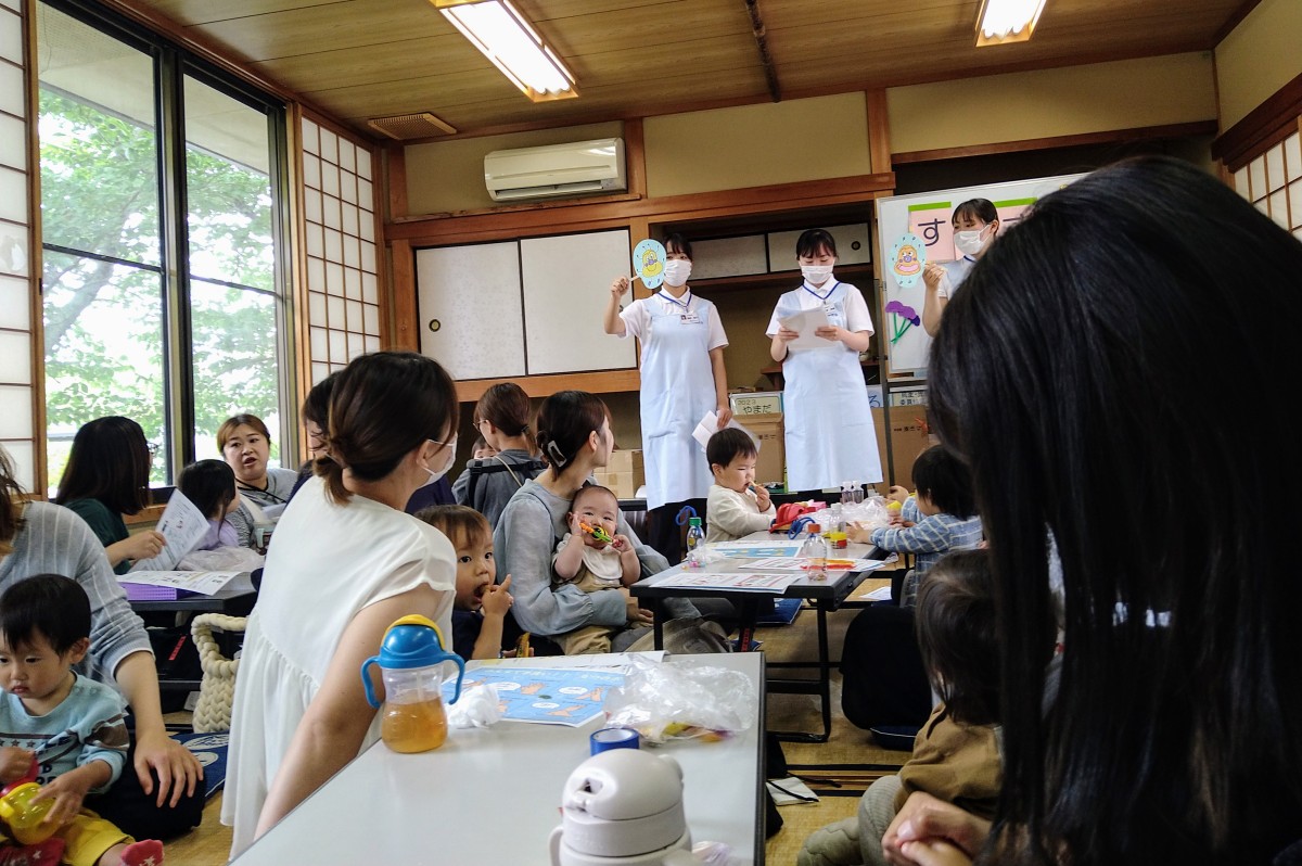 今回、滋賀医大医学部看護学科の学生さん6名、担当の先生2名が「地域看護学講座」として、すくすくランドに参加していただき「感染症の予防」についてミニ講話を実習してくれました。準備などありがとうございました。
