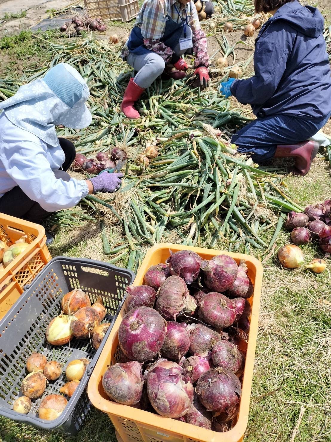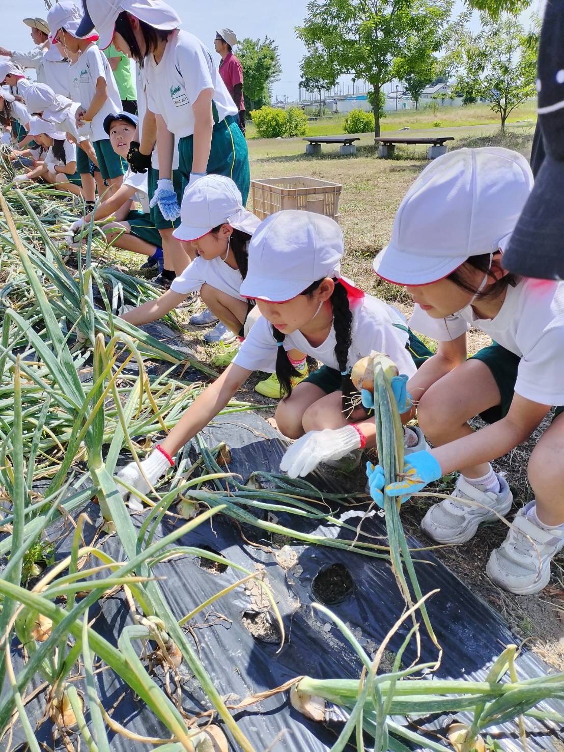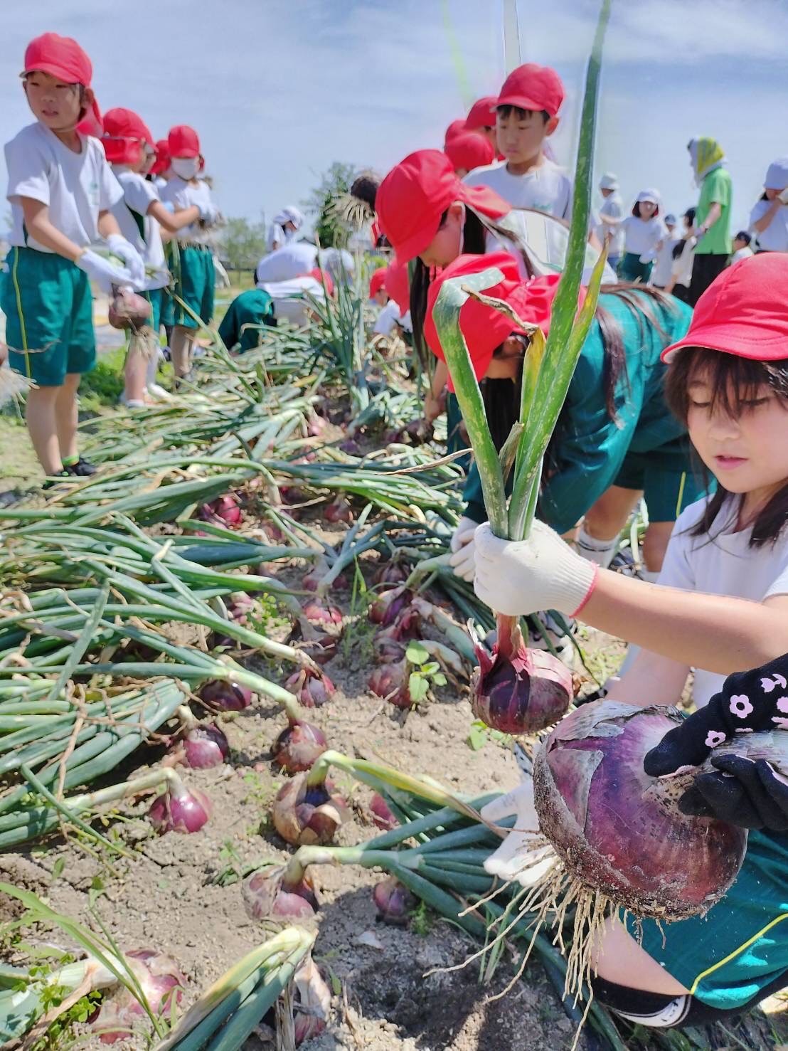3年生ai彩ひろばのスクール農園で玉ねぎの収穫体験をしました。