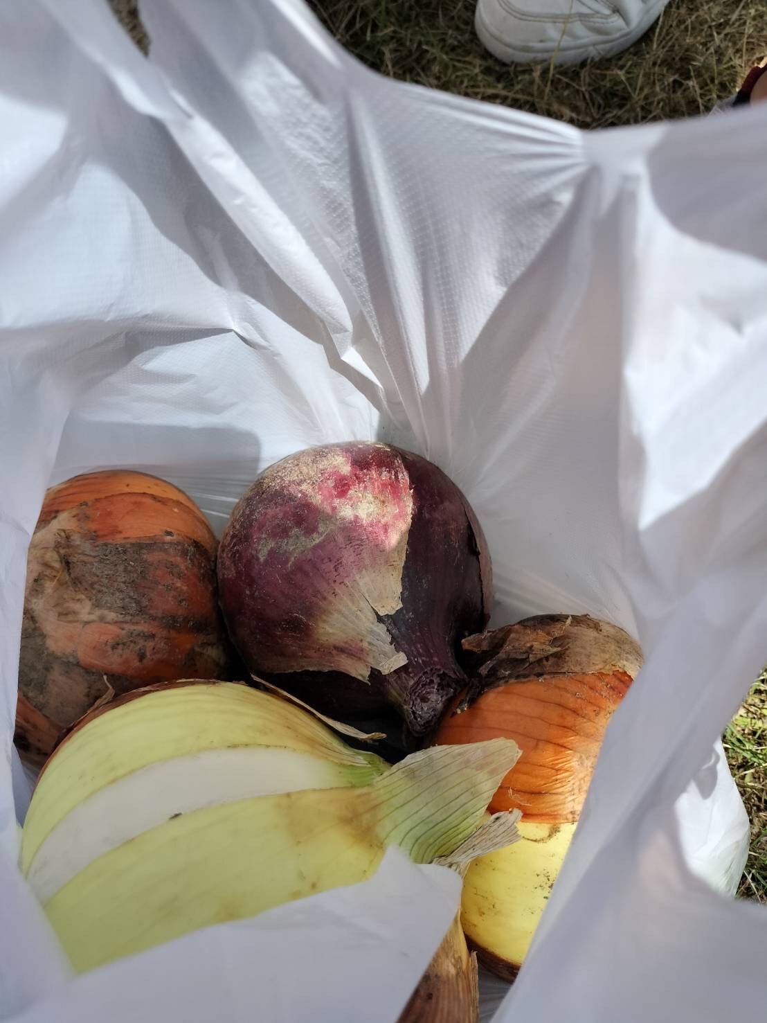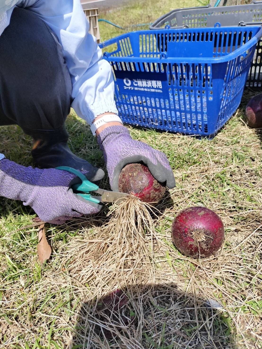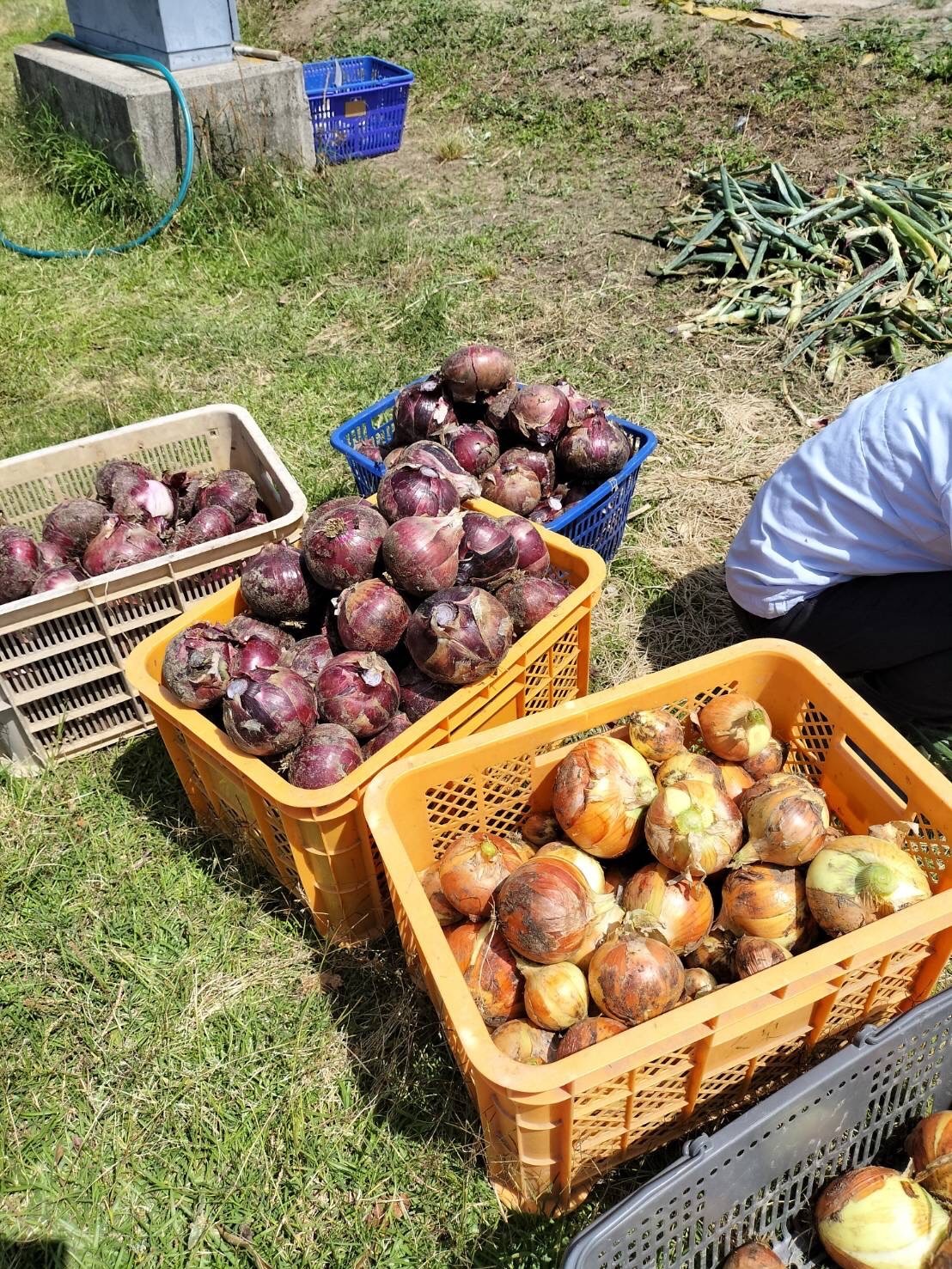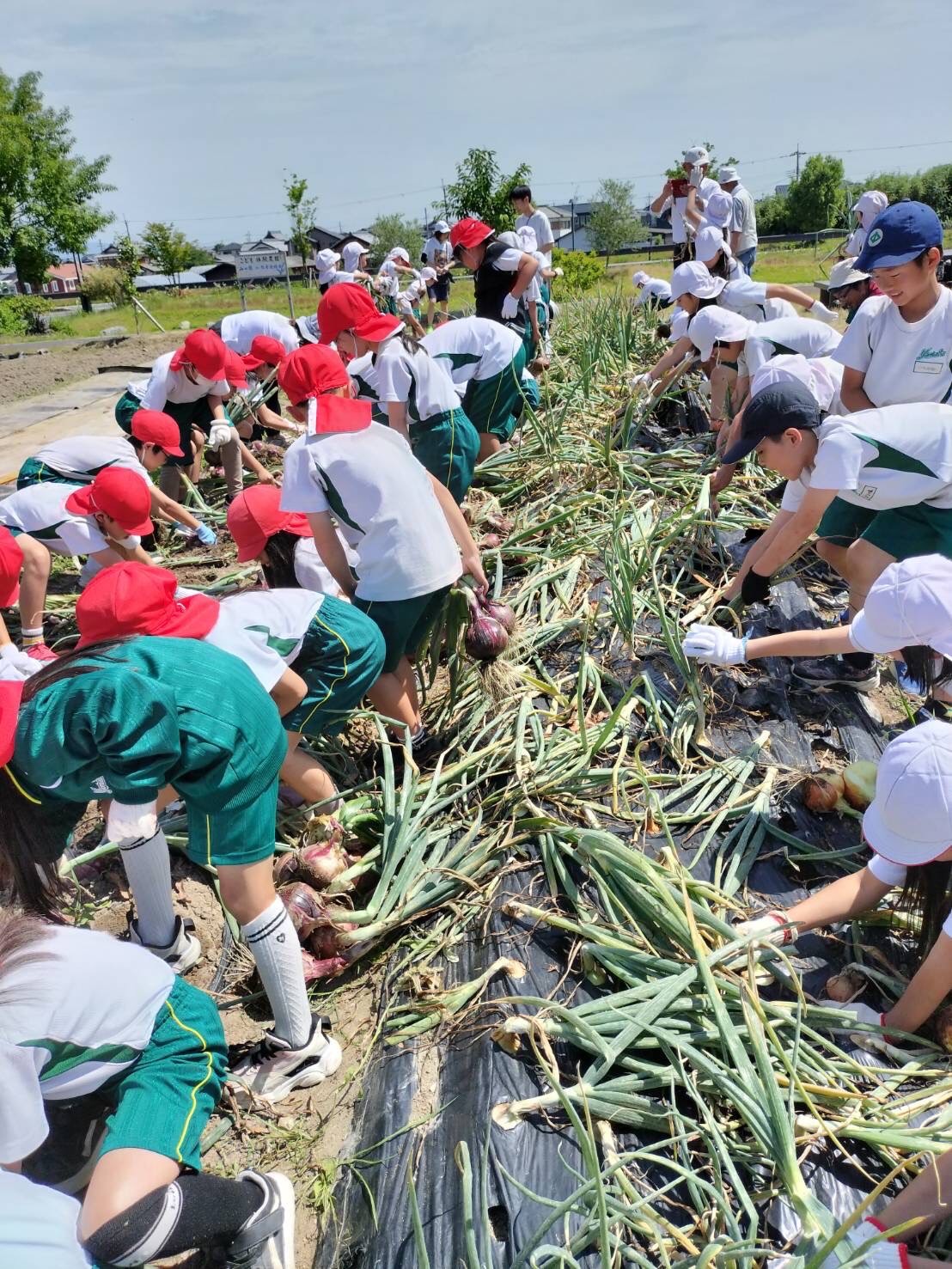 3年生ai彩ひろばのスクール農園で玉ねぎの収穫体験をしました。