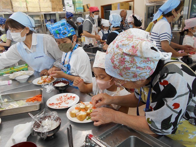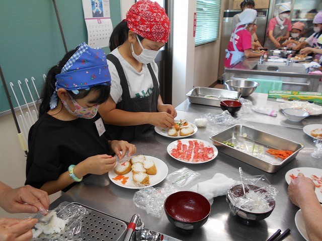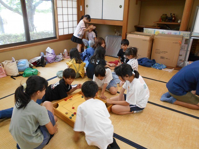 調理室の収容人数の関係で、金魚いなり作りと和室でゲームの2グループに分かれて