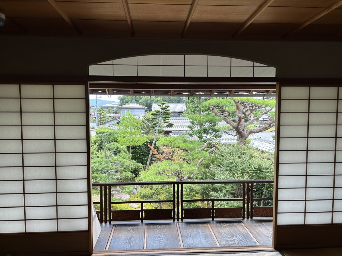 商家のつくり、そこからの庭園、暑さを忘れる風景でした。