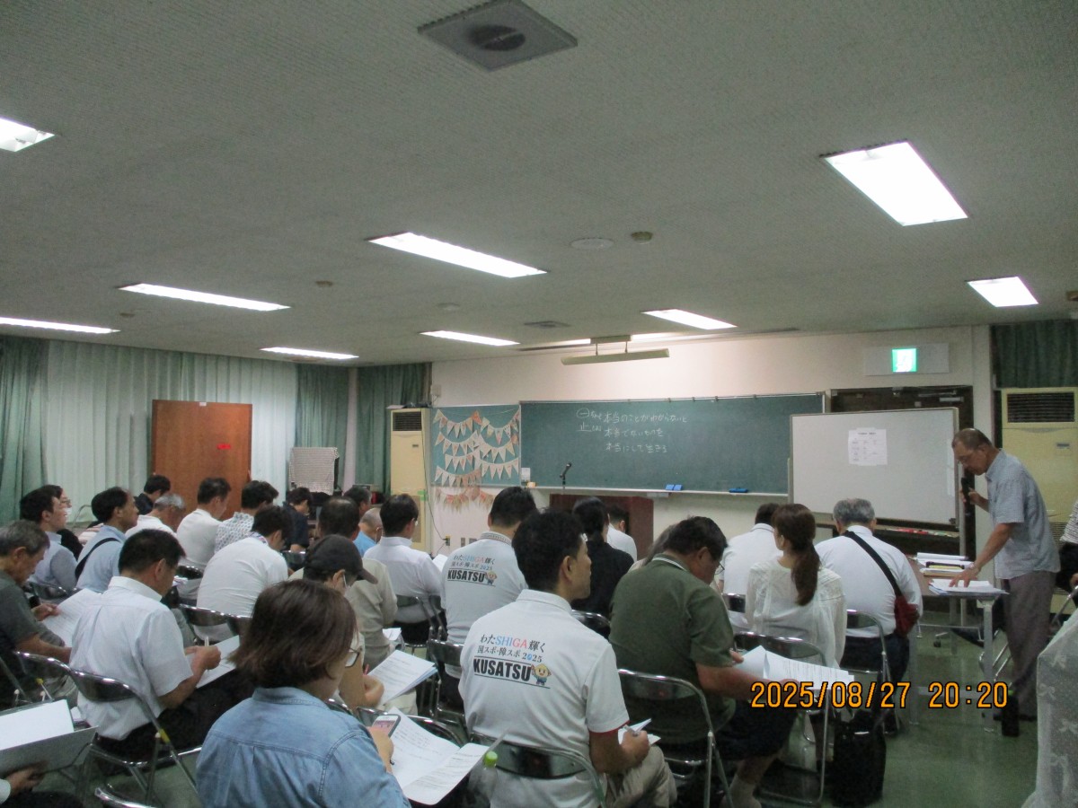 第3講座では、草津市同和教育推進協議会会長の上寺和親先生に講師をお願いいたしました。町別懇談会が始まって、来年で50周年の迎えるにあたり、その背景、歩み、意義などを詳しく教えていただきました。山田まちづくり協議会のホームページや総会資料を引用した資料を作成してくださり、とても分かりやすい講演でした。第4講座では、今年の町別懇談会の取り組み方について、人権センターの竹端先生から説明をしていただきました。今年は、従来の取り組みに、ワークシートを使用した取り組みを加えました。シナリオもあり「事実と意見の違いを見つける」や「決めつけと差別」について、みんなでワイワイと楽しく話し合える内容になっています。皆さまで、有意義で楽しい町別懇談会にしていただけたらと思っております。