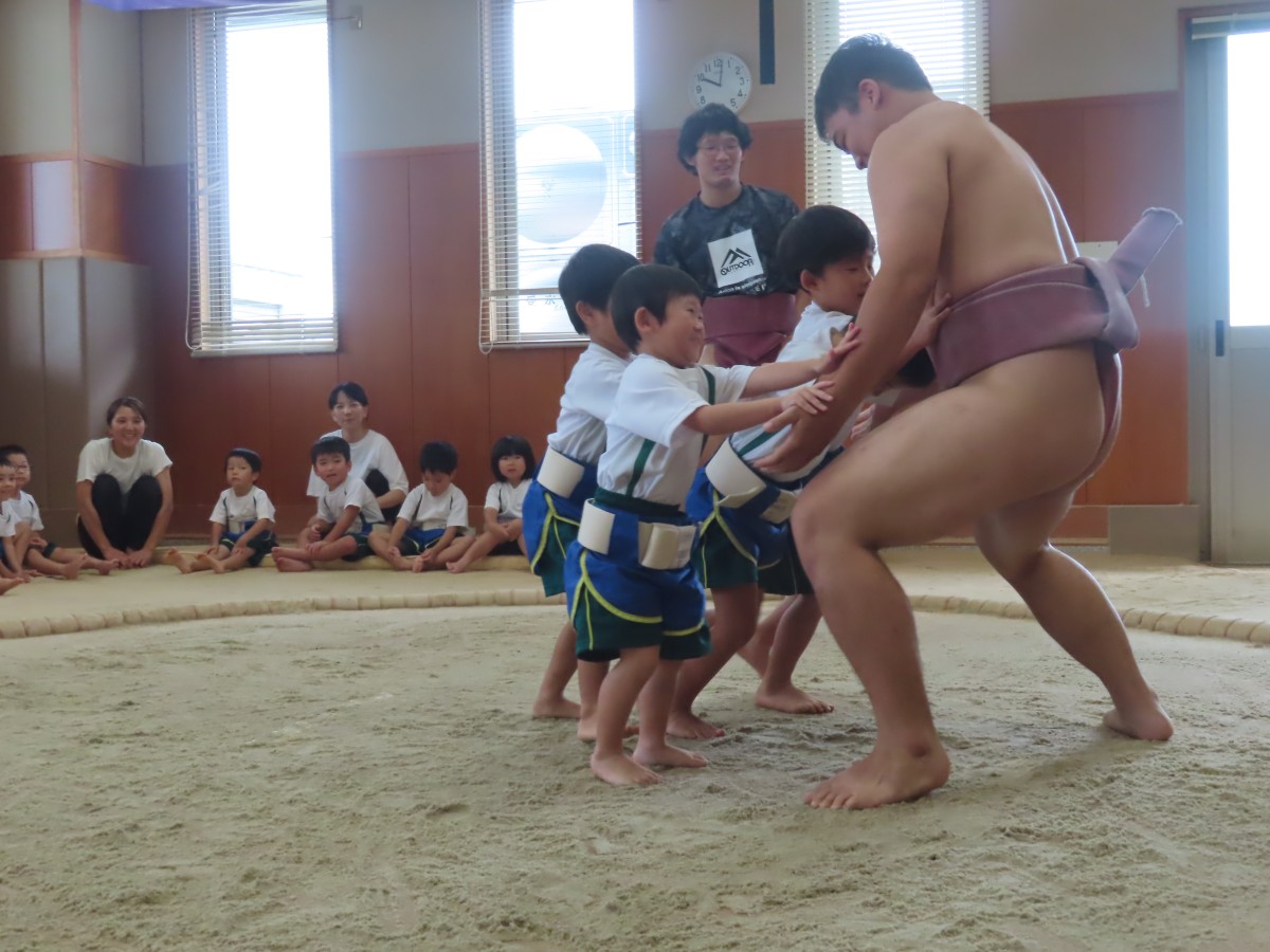 また同じく長年にわたり山田こども園の伝統として取組んでいる相撲維体験を9月4日(木)に4・5歳児がおこないました。