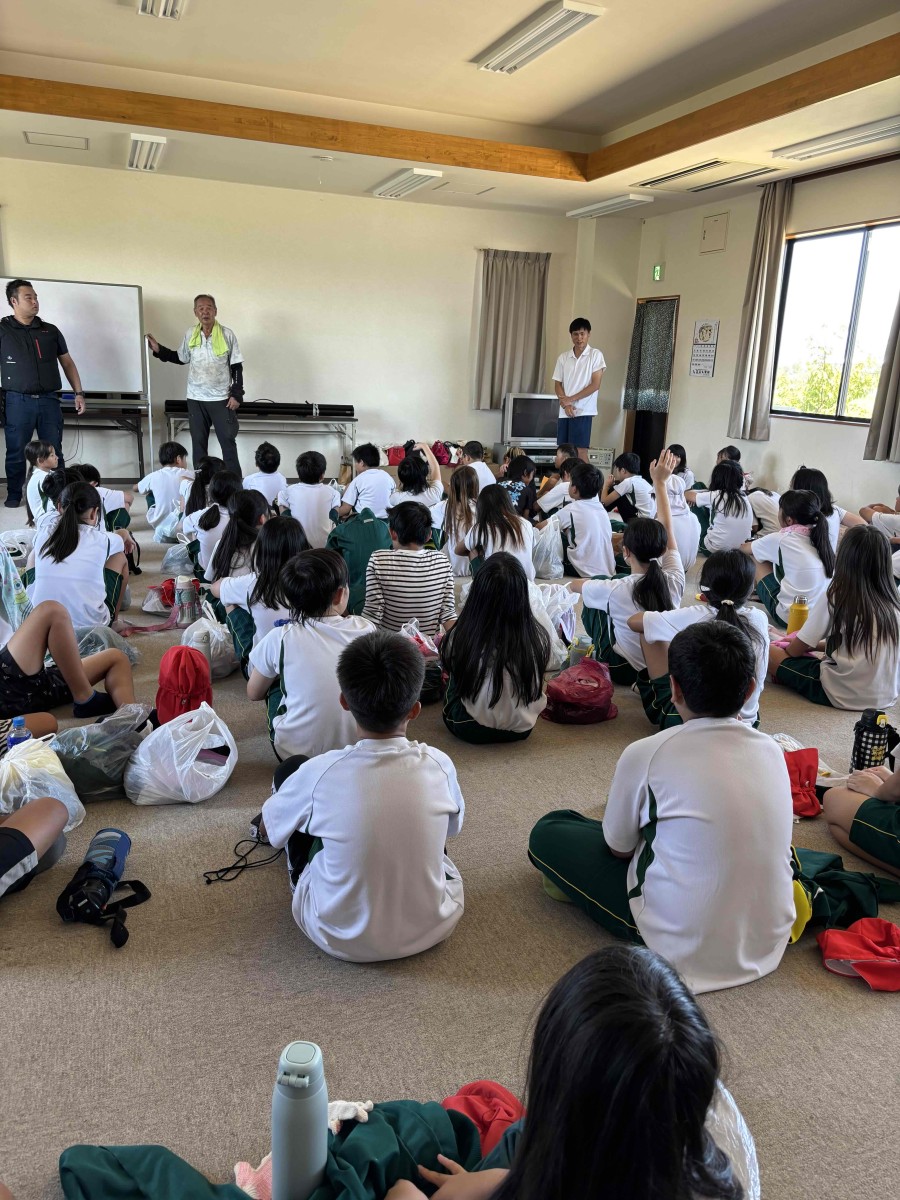 9月16日、まだまだ厳しい暑さの中、5年生が稲刈り体験をしました。開会の挨拶の後、「五条ふるさと環境を守る会」の清水さんからのお話があり、次にJAの方から稲刈りの方法を教えていただきました。そして、帽子、長袖、長ズボン、軍手、タオル、それに水筒と、全身稲刈りモードに変身し、長靴を履いて、いざ田んぼへ!