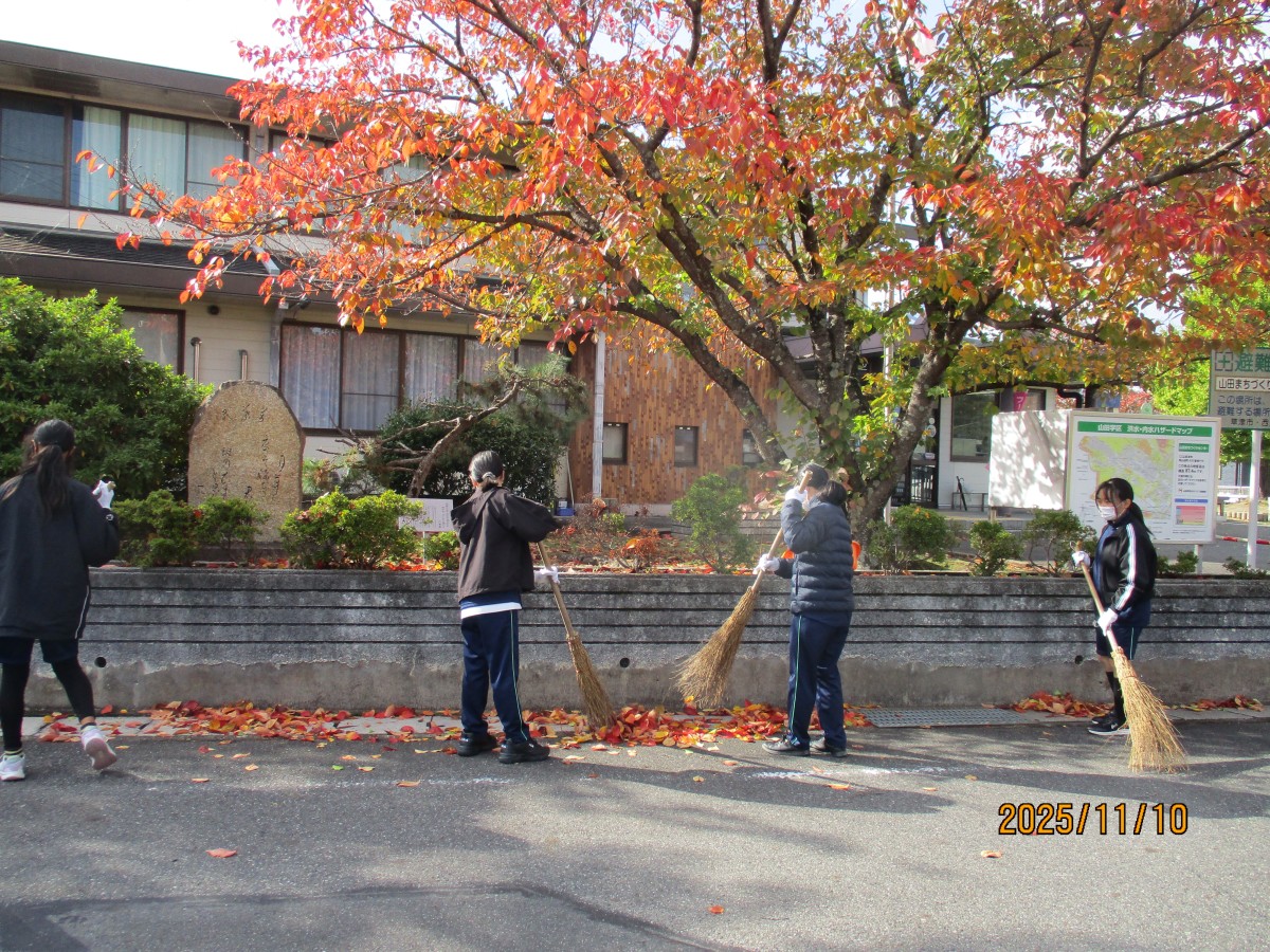 拾っても拾っても葉っぱが落ちてきてとても大変でしたがみんなで掃除しているところの写真を撮りながらしていたので、とても楽しかったです。