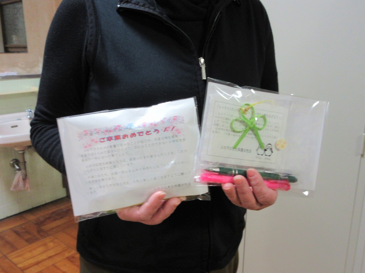 例年卒業生にはしおりをお渡ししていましたが、今年度は、シトラスリボンのキーホルダーと