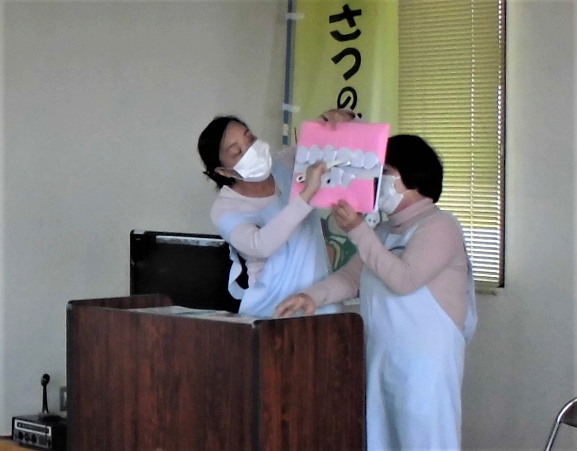 今年度の歯科啓発推進事業として、学区ごとに作った「歯みがきさん」と「今日から始める口腔ケア!」のパンフレット