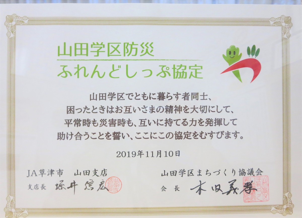 JA草津市山田支店とふれんどしっぷ協定を締結