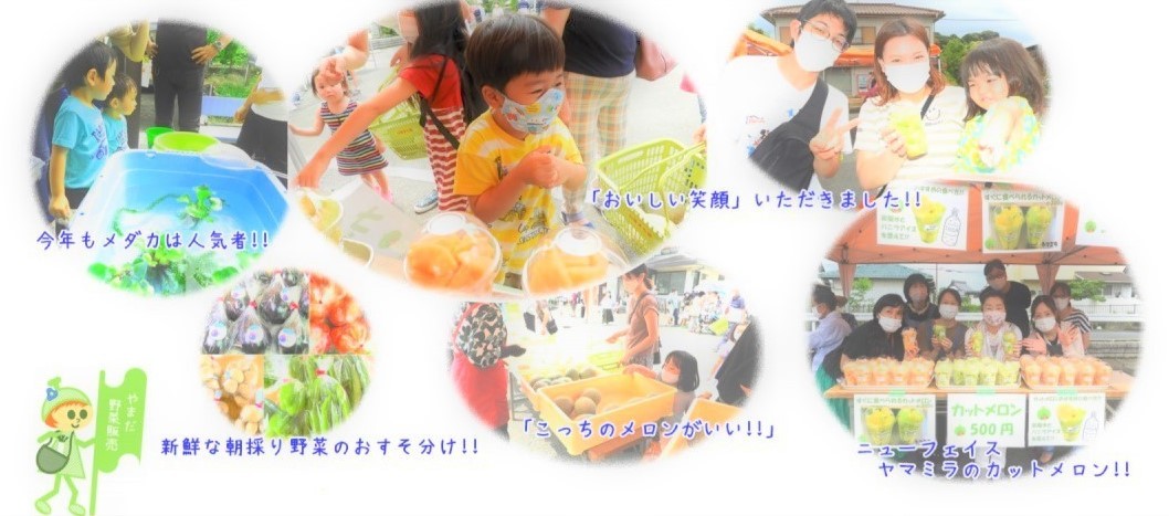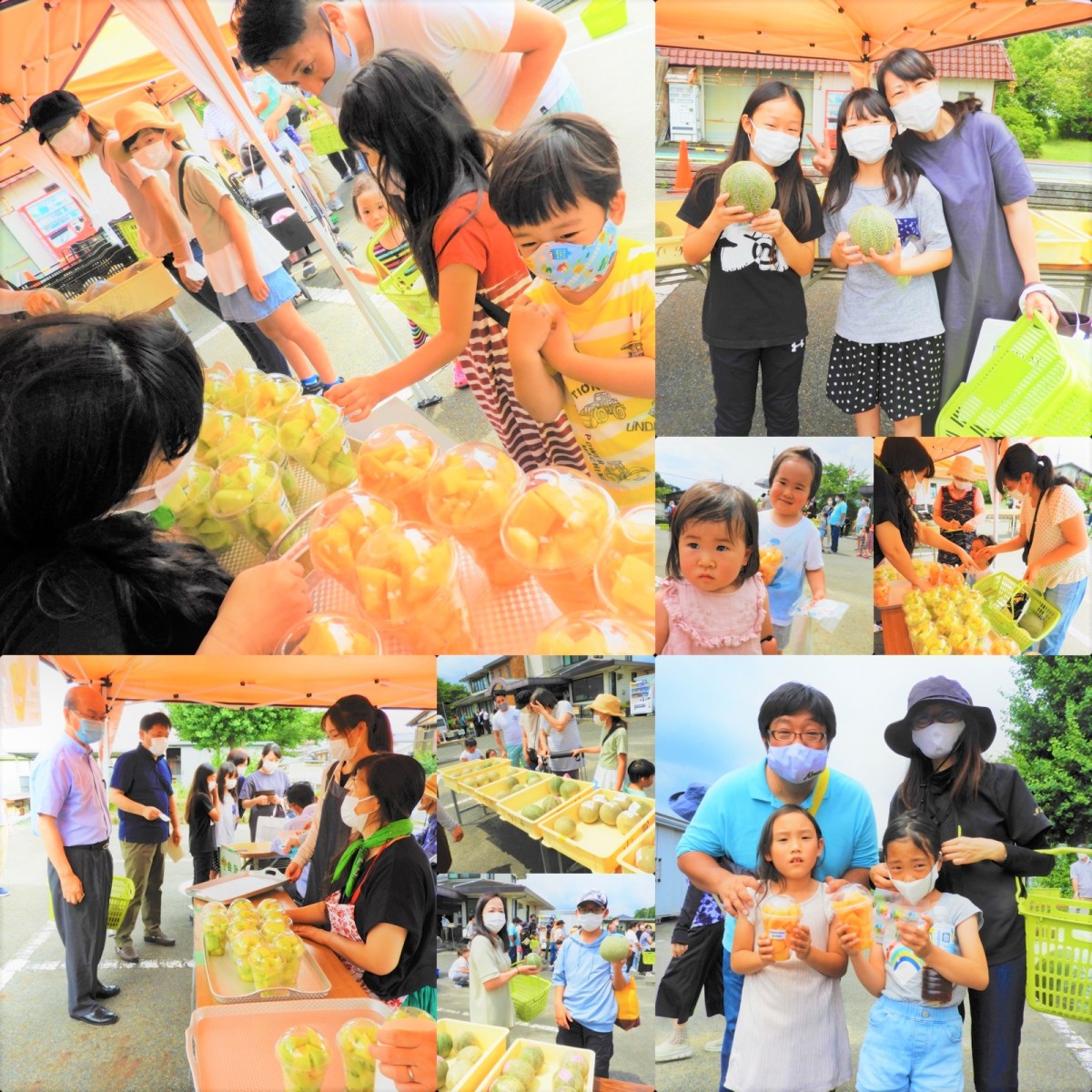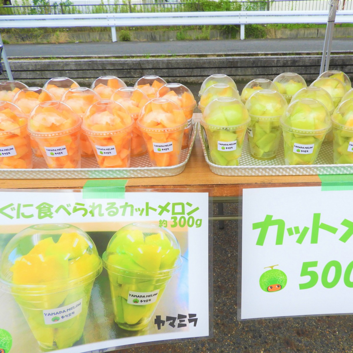 今年は山田学区まちづくり協議会企画グループ「ヤマミラ」によるカットメロン販売が初お目見え!! 透明のカップに入ったオレンジや黄緑の美味しそうなメロンを見つめる子どもたちの姿も見られました!