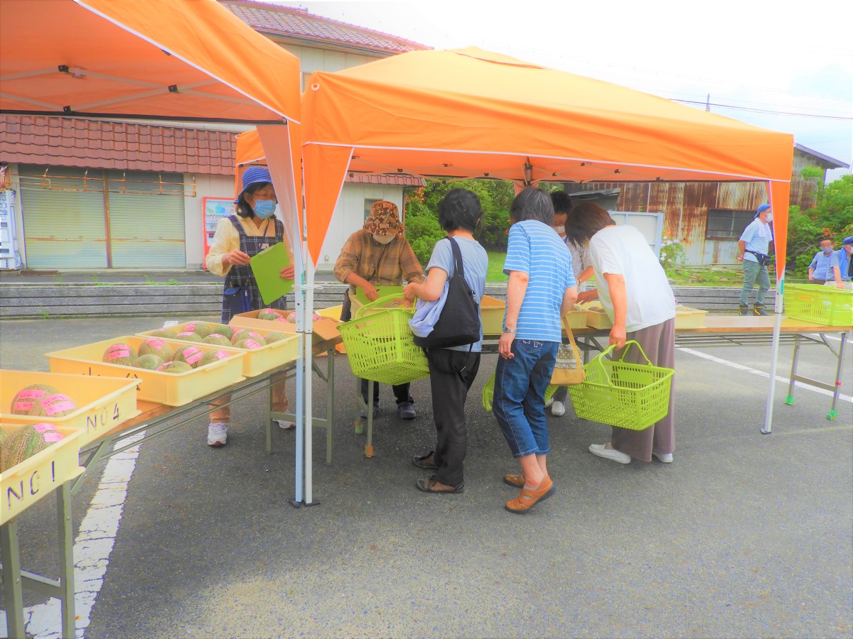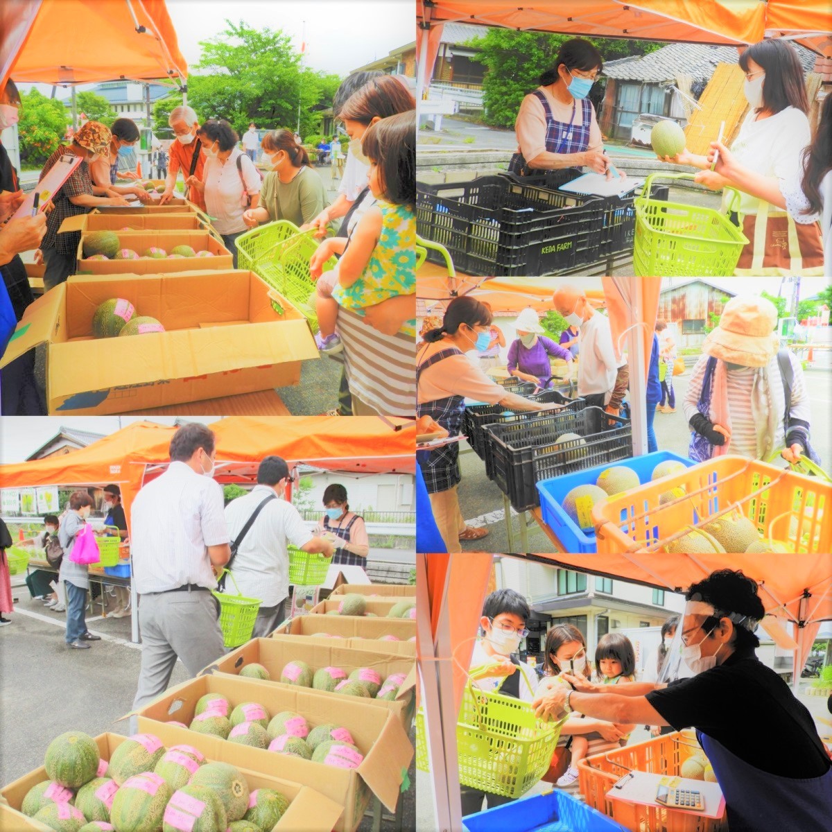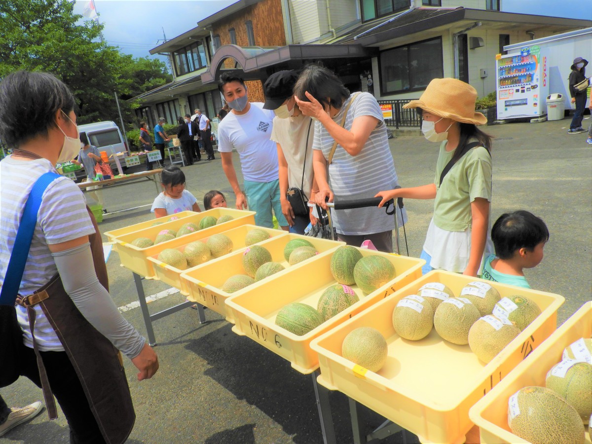 2020年度から始まったメロン販売ですが、今年度も6月29日、7月6日、7月10日の3日間、コロナ対策をとりながら無事に開催することができました。梅雨の時期でしたが天候にも恵まれ、延べ270人の方に来場いただき、総数523個のメロンが売れ、大盛況のうちに終えることができました。ありがとうございました。