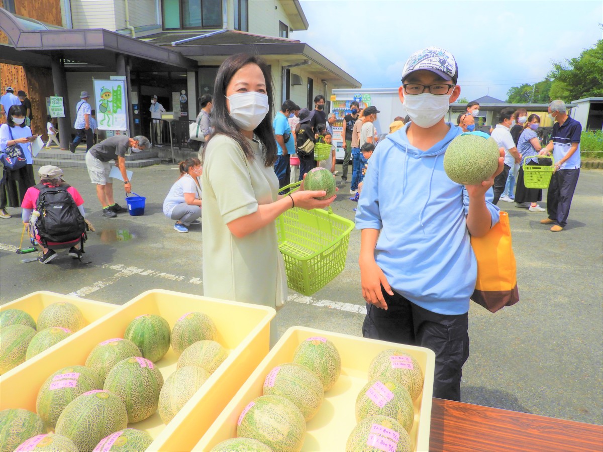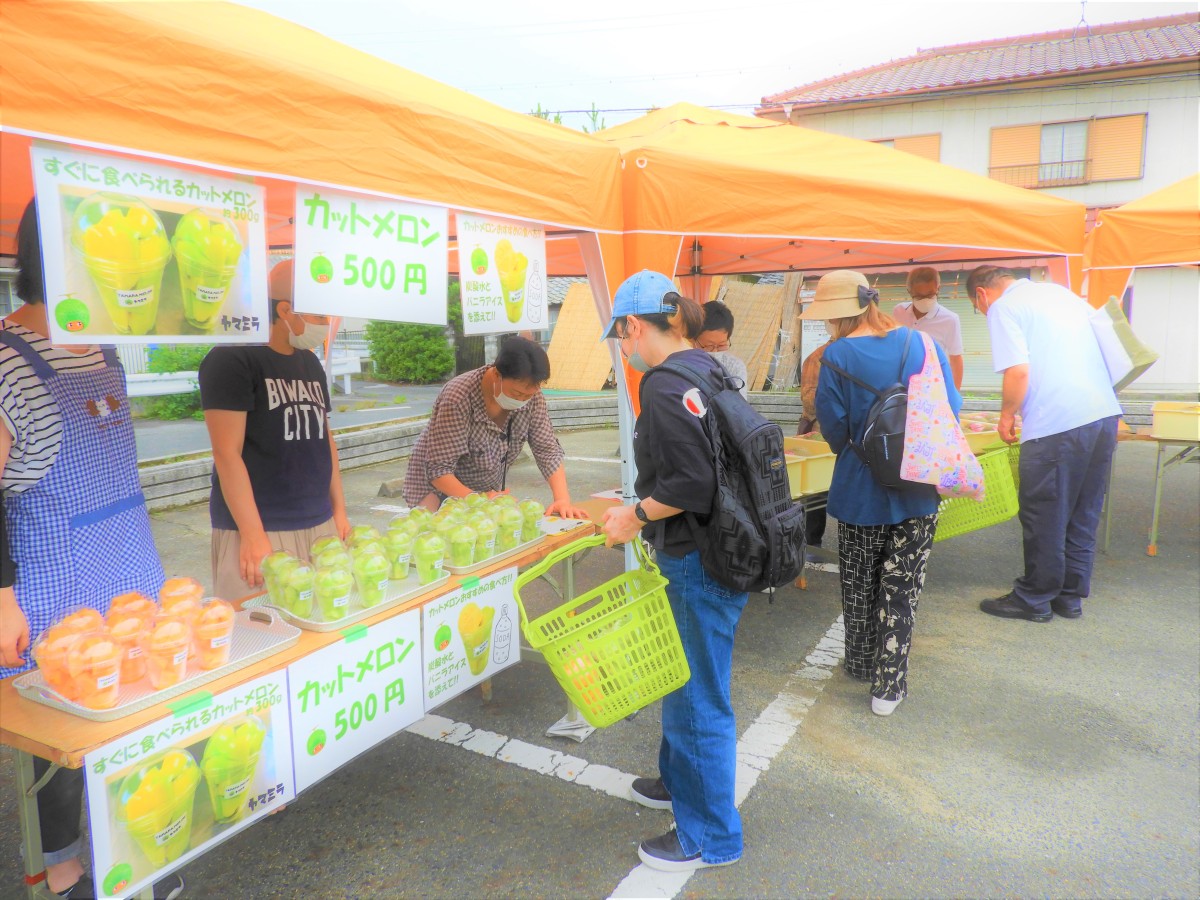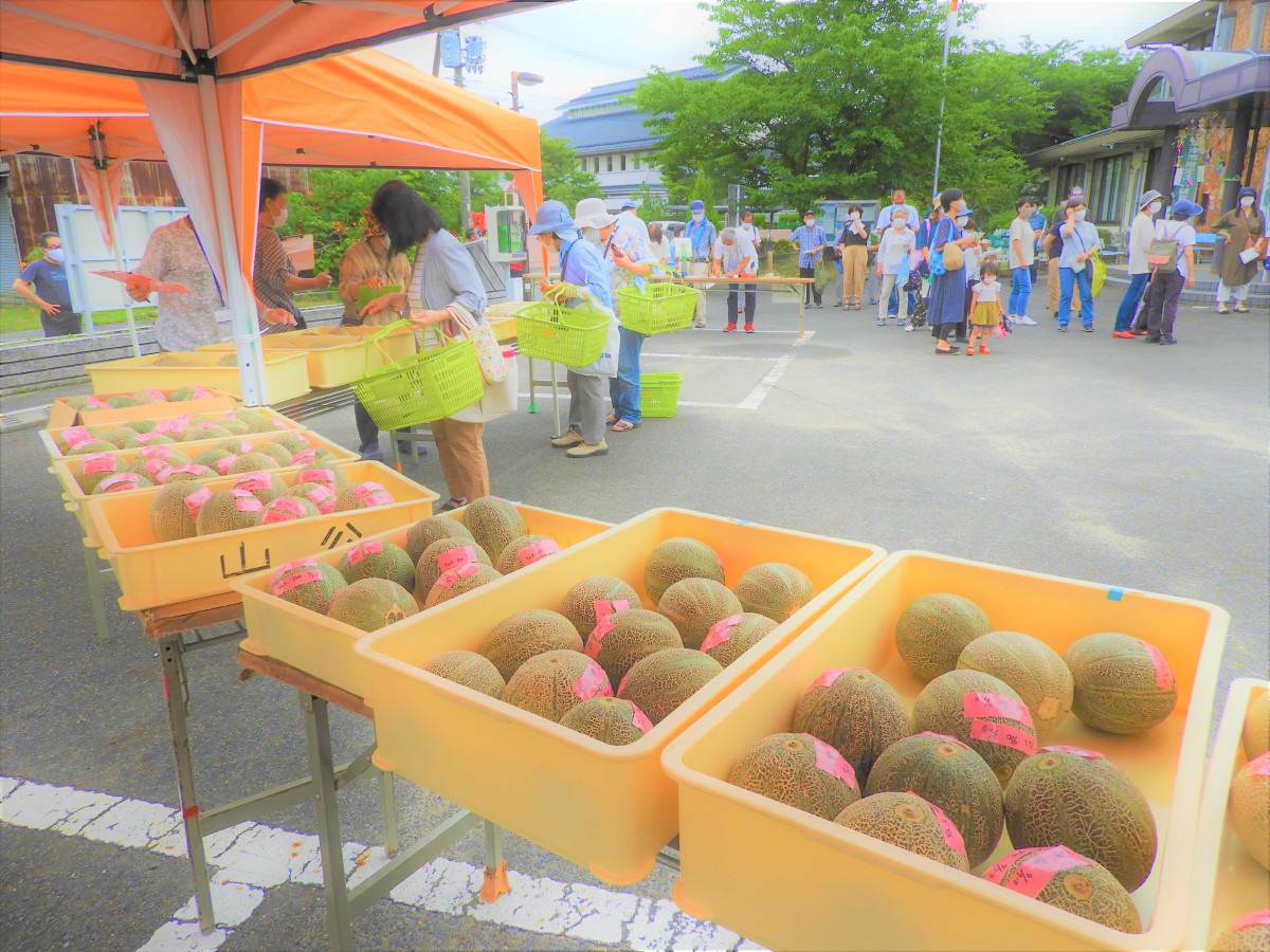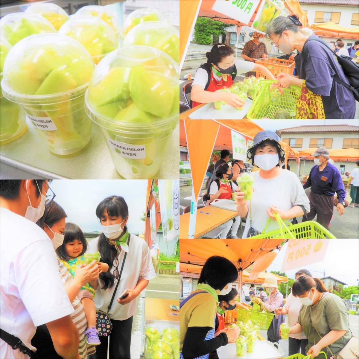 2020年度から始まったメロン販売ですが、今年度も6月29日、7月6日、7月10日の3日間、コロナ対策をとりながら無事に開催することができました。梅雨の時期でしたが天候にも恵まれ、延べ270人の方に来場いただき、総数523個のメロンが売れ、大盛況のうちに終えることができました。ありがとうございました。