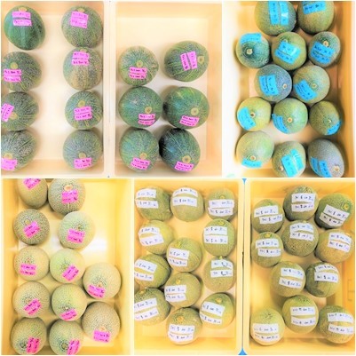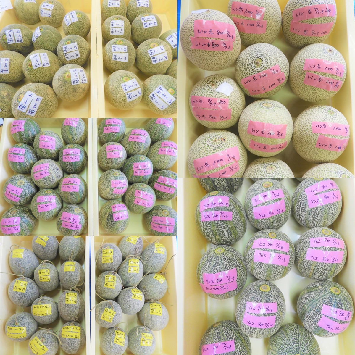 本日の販売のメロン:タカミ、アムス、レノンハート(赤) 合計184個