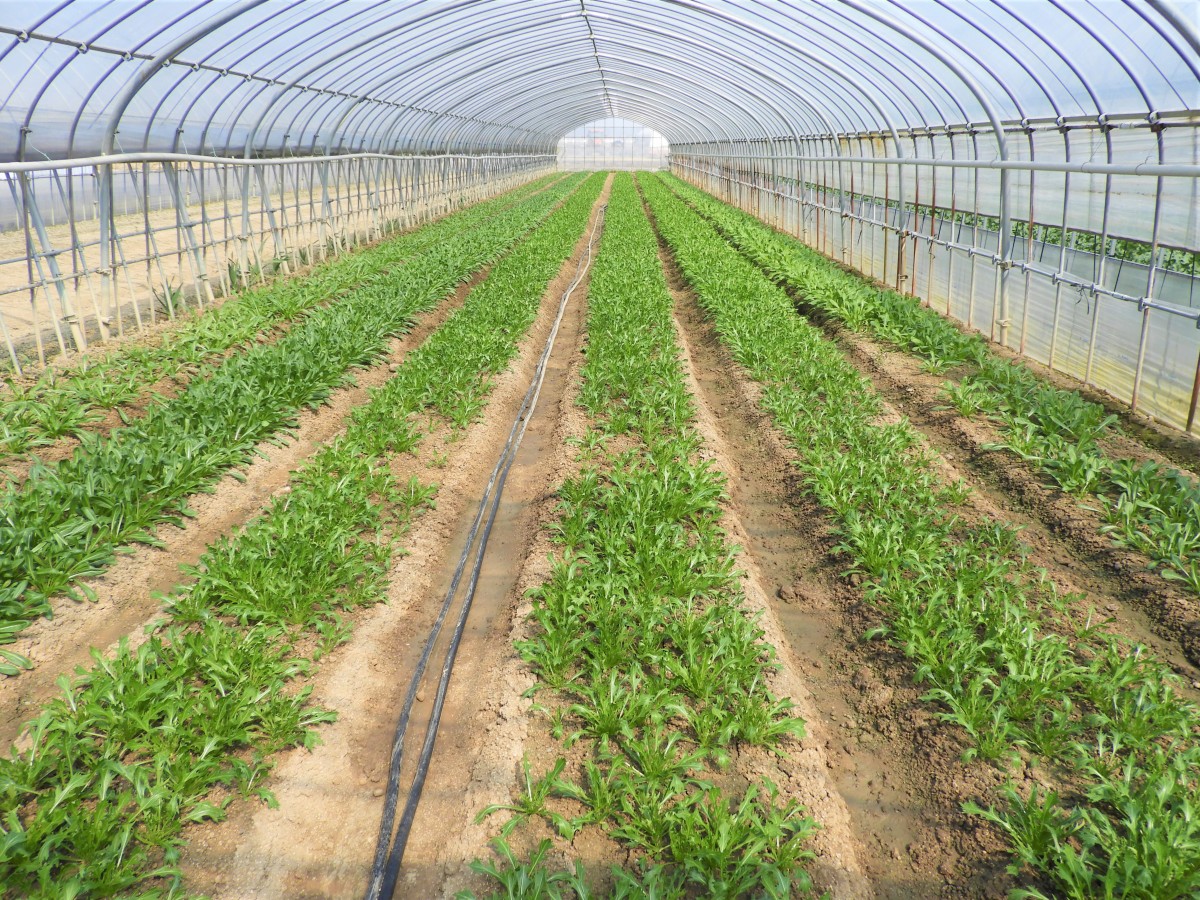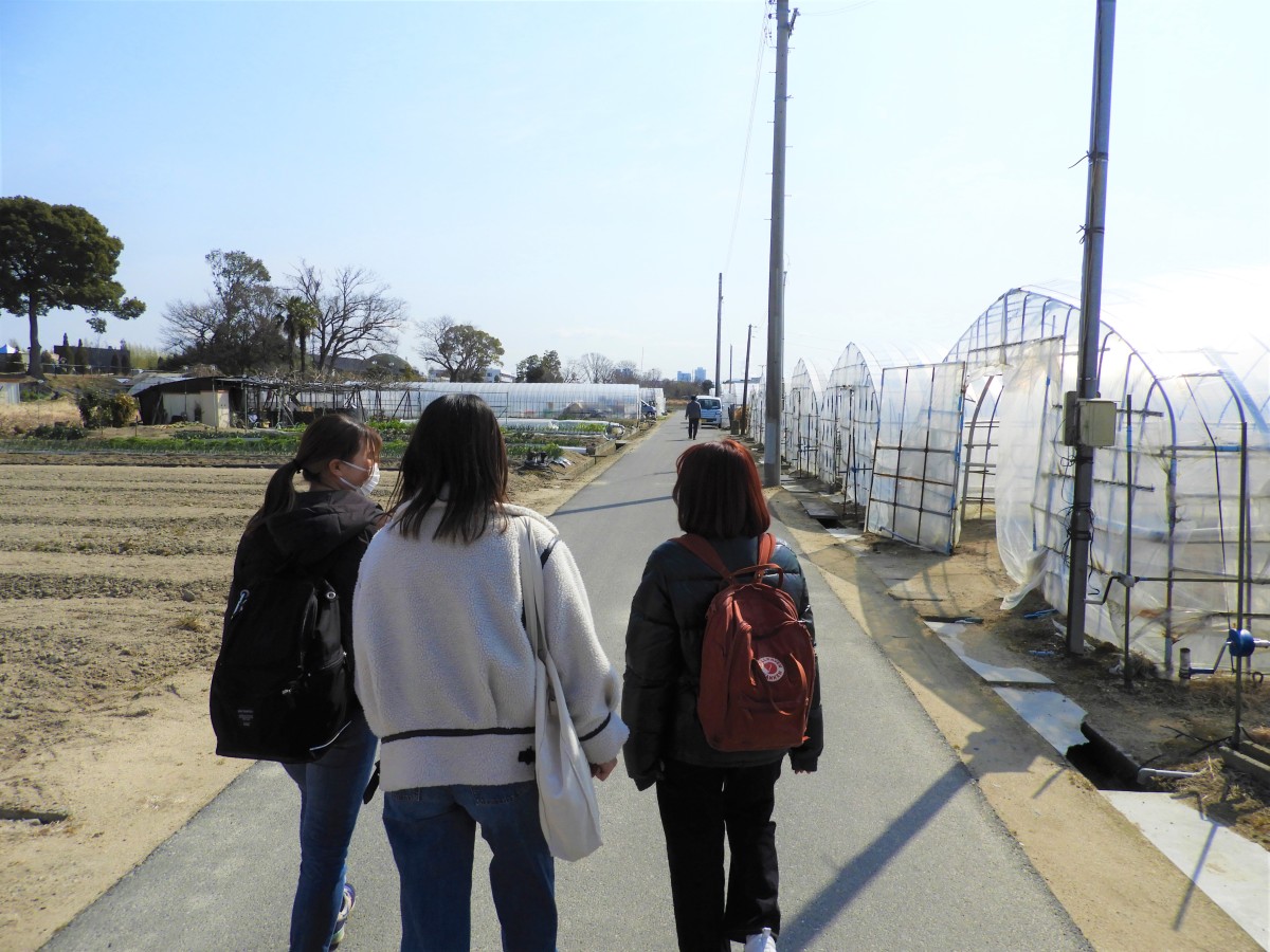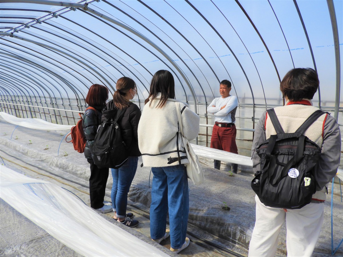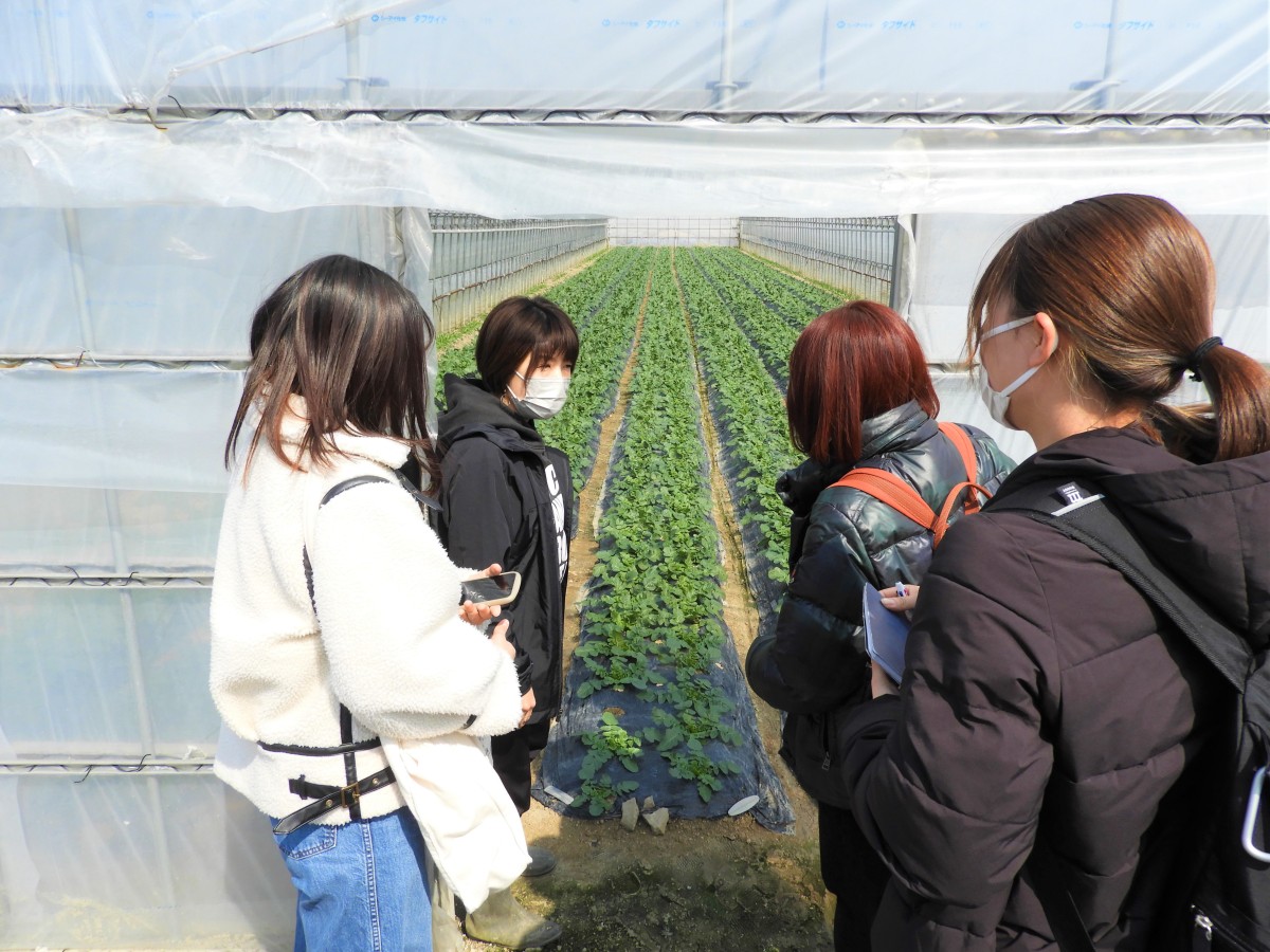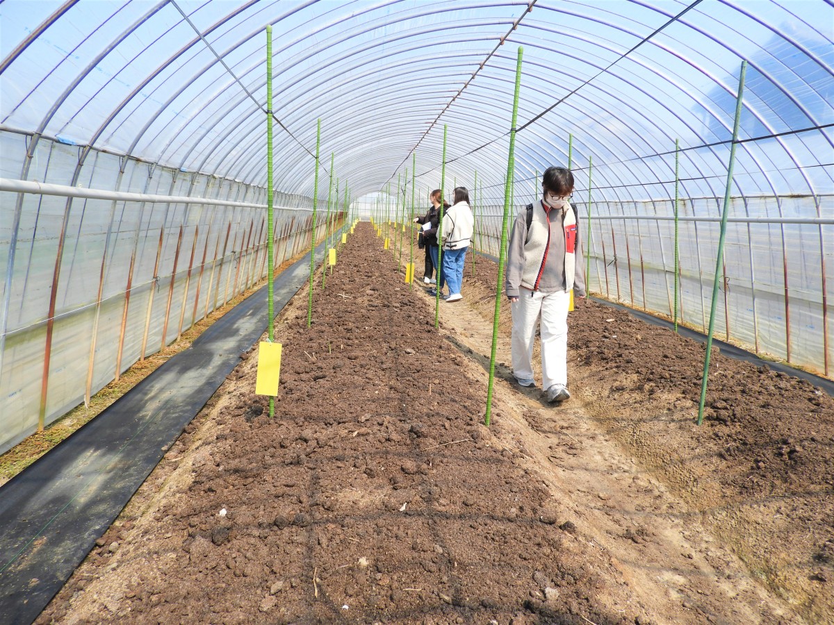 山田学区の野菜やビニールハウスにも興味があるようなので、まずは農家さん3軒ほど見学させてもらいました。