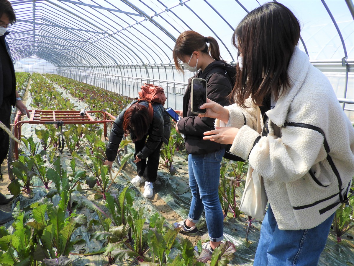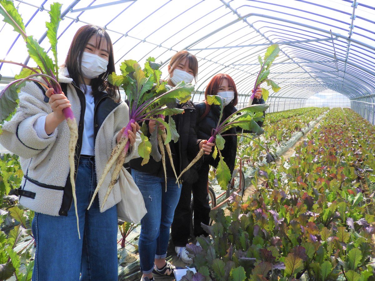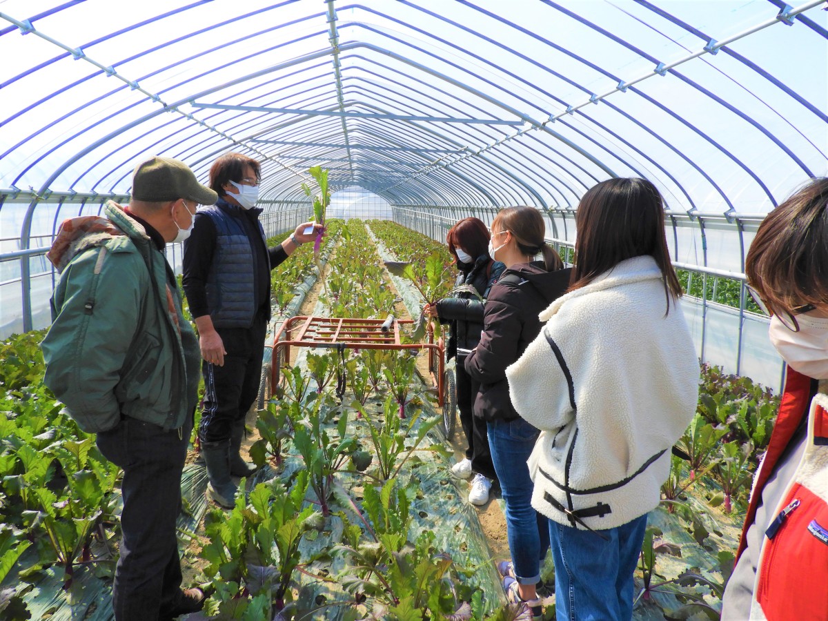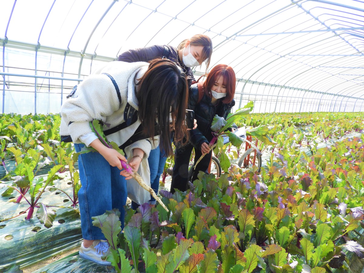 葉っぱまで全部いただける日野菜!大学生たちも大喜びでした。