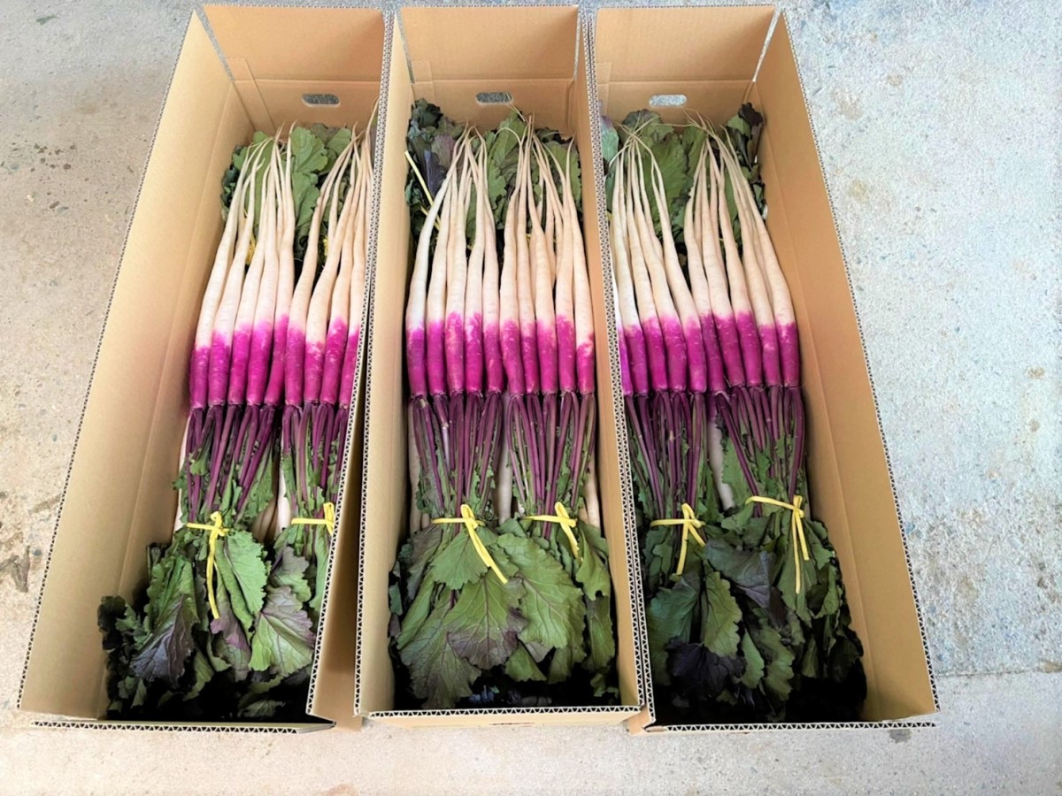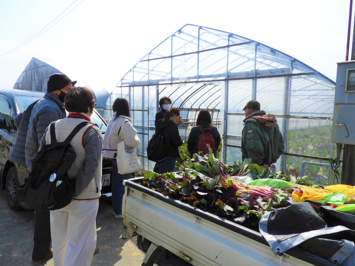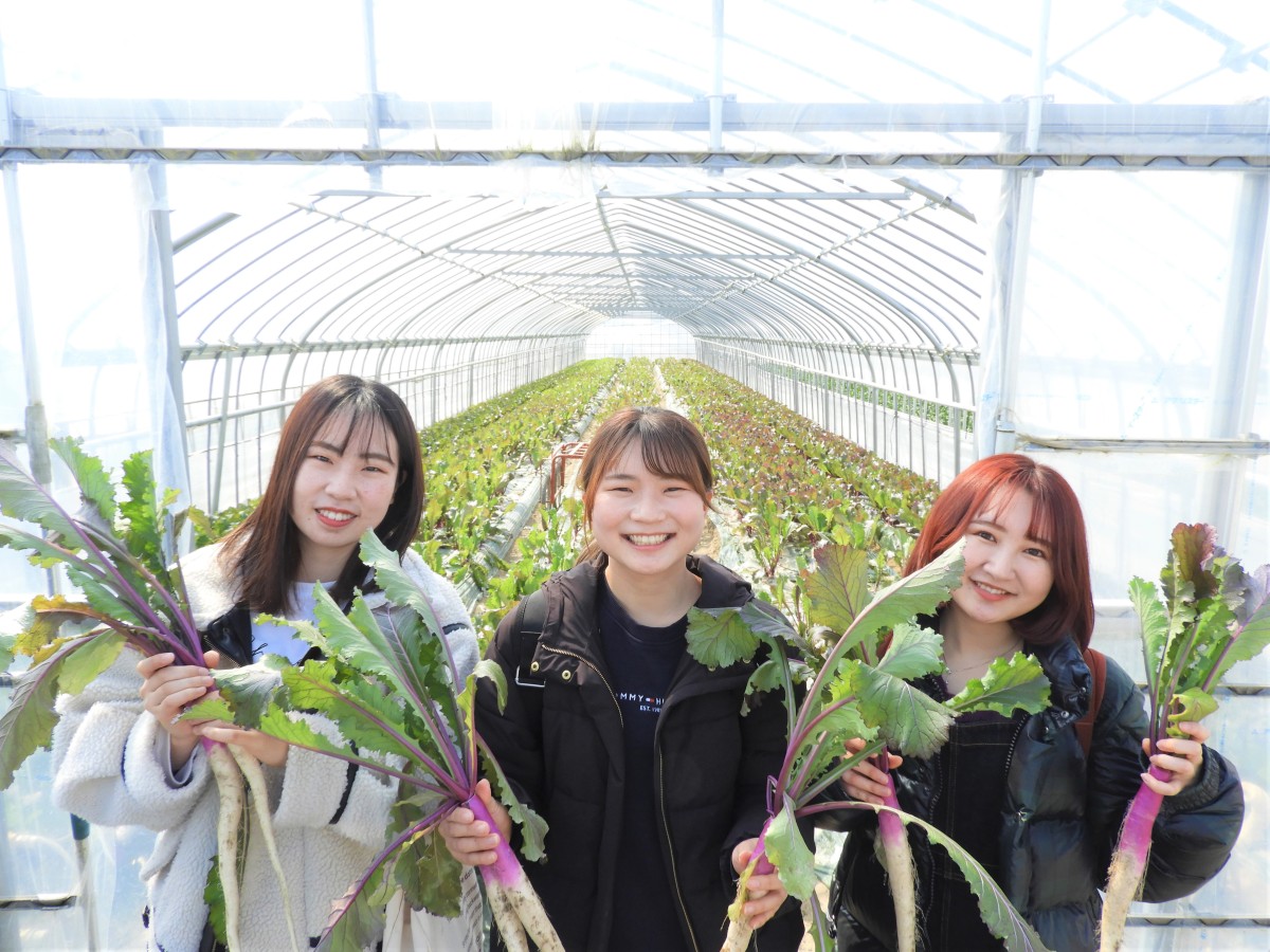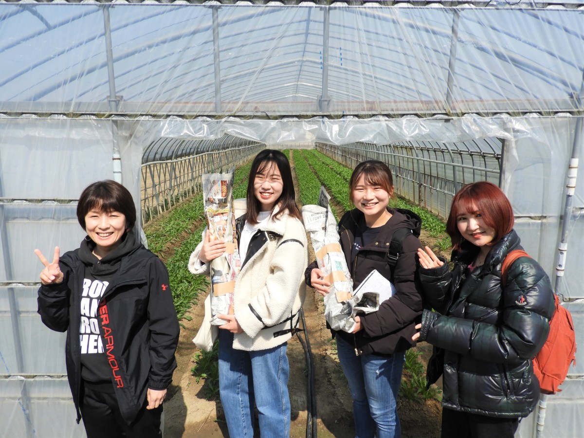 葉っぱまで全部いただける日野菜!大学生たちも大喜びでした。