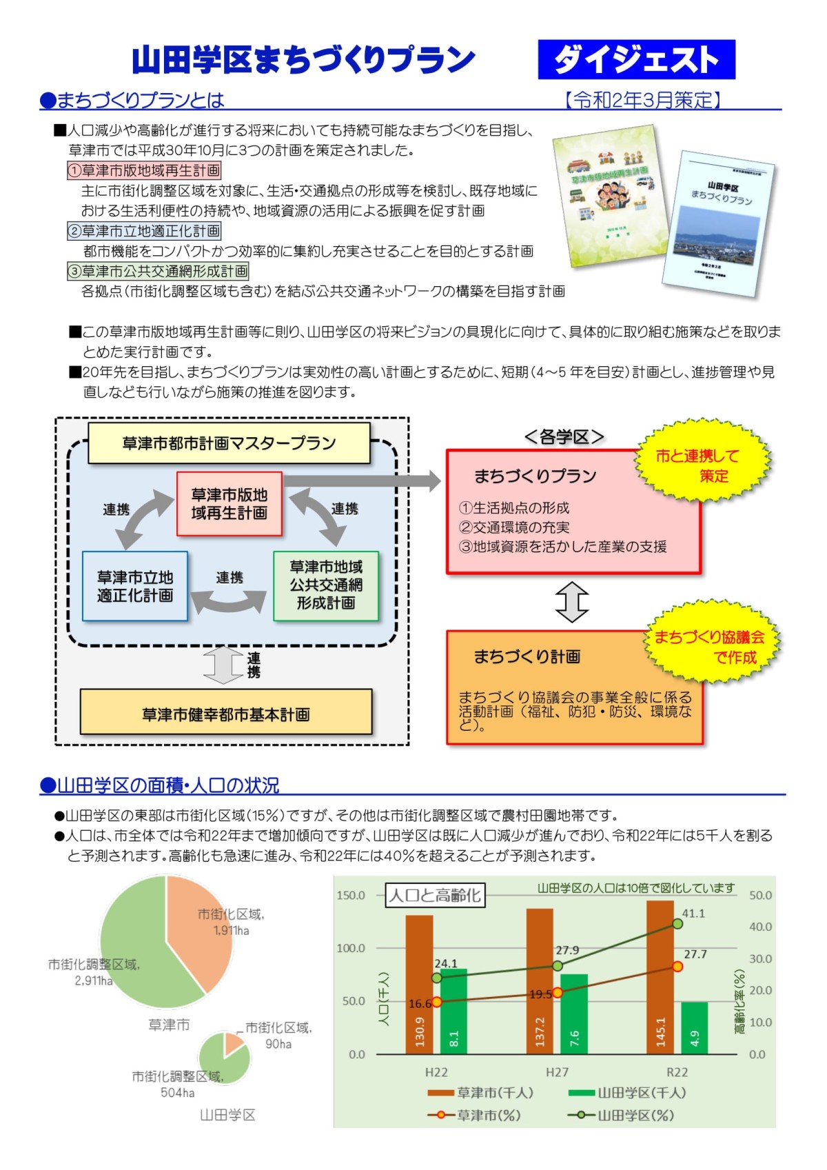 そこで、私たちの山田では市のまちづくり計画と連携をとりながら、20年先を見据えた山田まちづくりプランを策定しました。