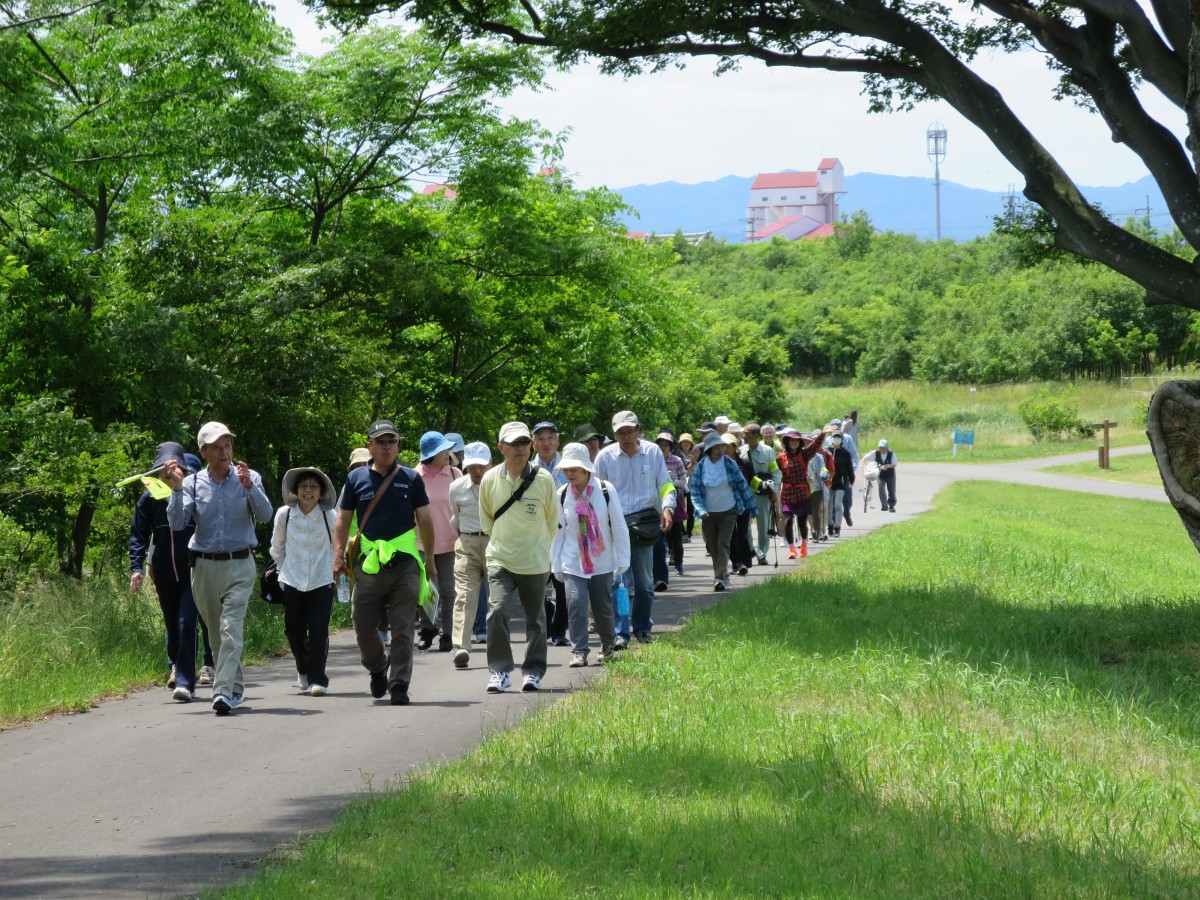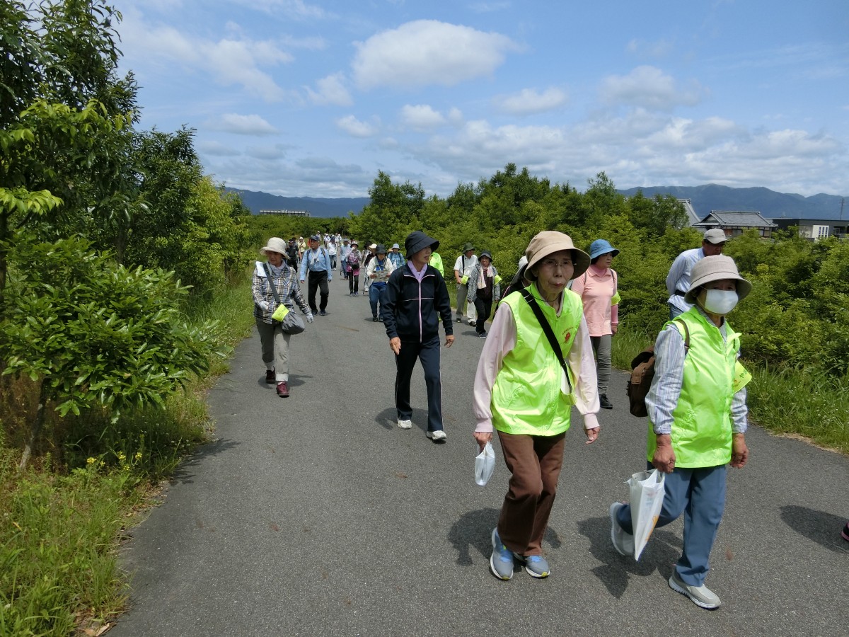 梅雨入り前の6月3日、守山市の野洲川跡地にある「びわこ地球市民の森」において、今年度最初の「やまだウォーク」を実施し、47名が参加しました。