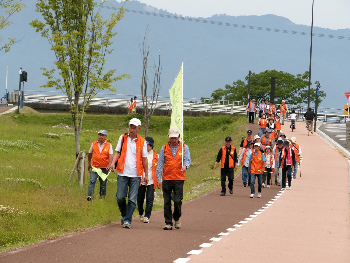 今回は山田まちづくりセンターを出発し、北山田町に誕生した新名所「草津川跡地公園のai彩ひろば」までを往復する約4kmのウォーキングイベントでした。