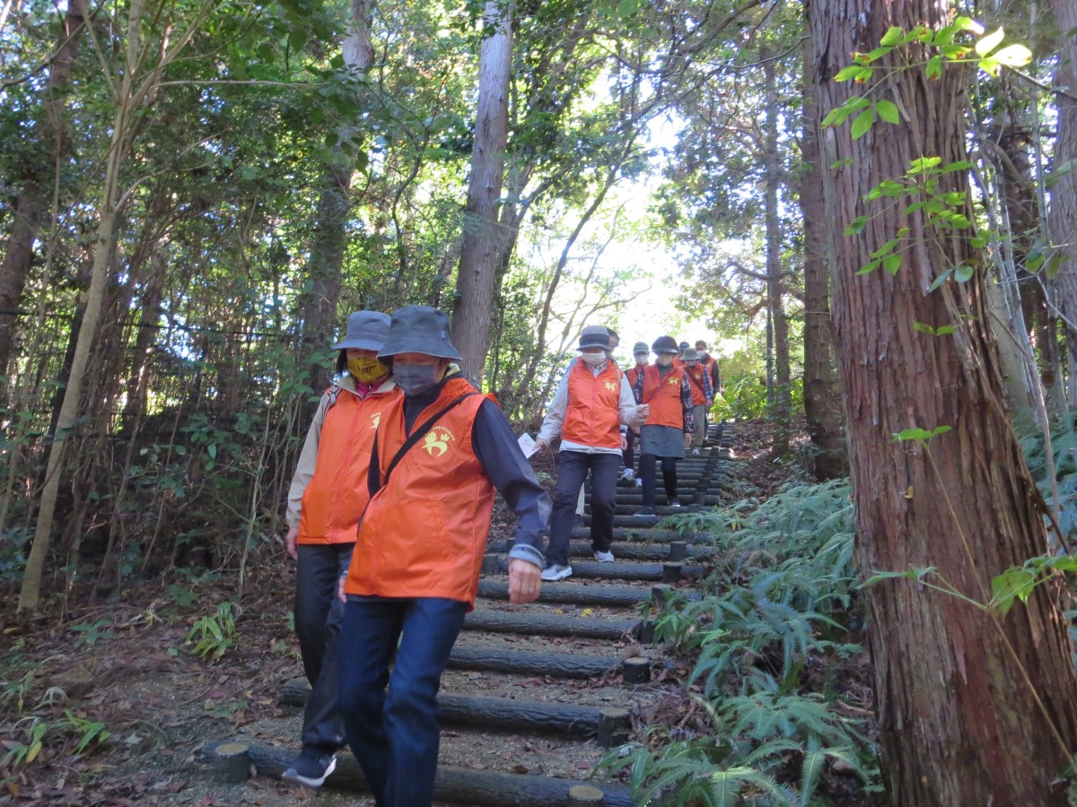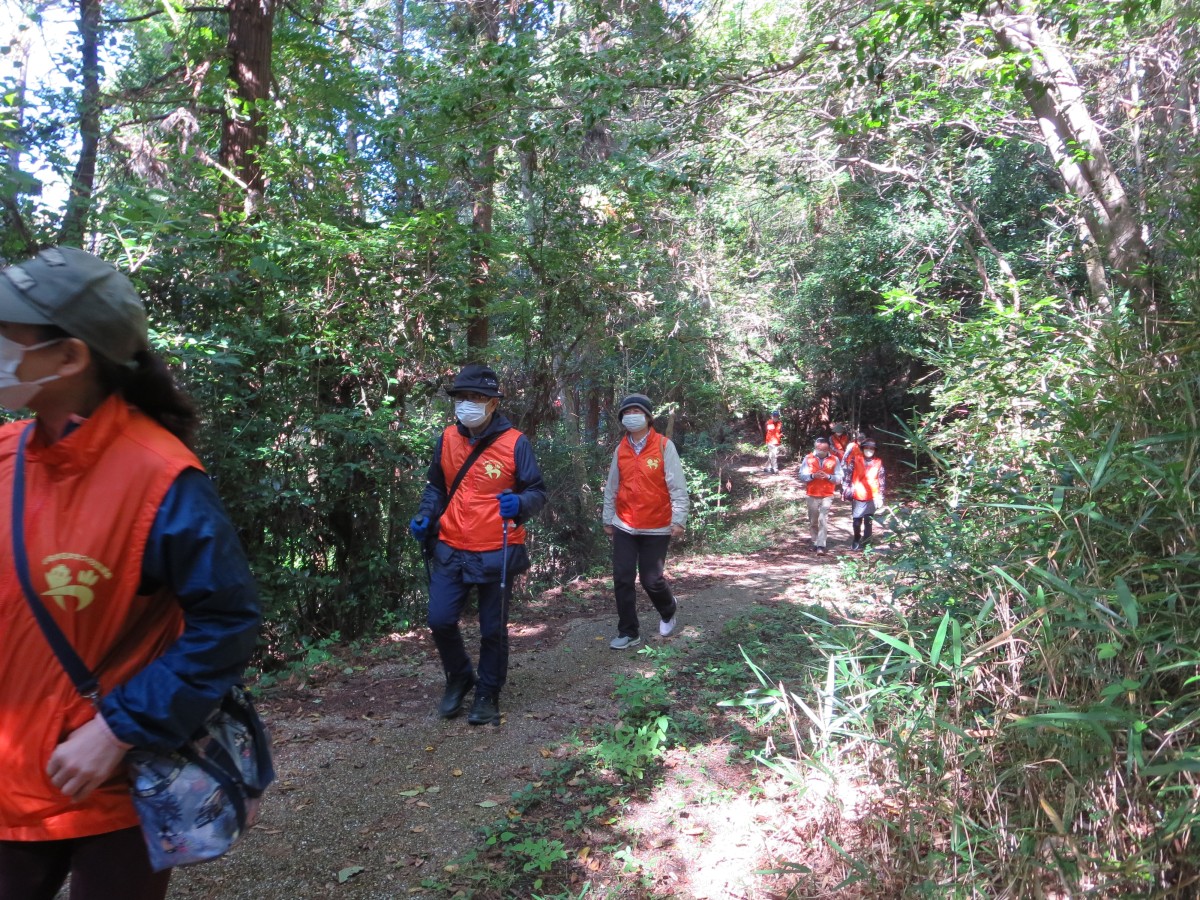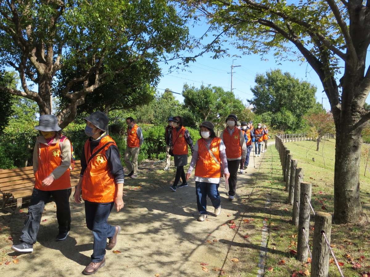 10月25日、やまだウォークを開催しました。今回は、新型コロナウイルス感染症対策を考慮した結果、場所を身近なロクハ公園に決定し、現地集合・解散、マスク着用、食事なしとしました。まずロクハ荘内にて、音楽と映像に合わせて健康体操を行いました。リズムゲームのような体操で「楽しい」と好評でした。続いてロクハ公園内をウォーキングしました。秋晴れの自然あふれる林間コース。公園内の多様な植物を詳しくガイドしていただき「森林浴最高!」「草津再発見!!」とこちらも好評でした。例年より参加者は少なめでしたが、久しぶりの外出という方もおられ、楽しんでいただけたようです。まだまだコロナ禍の中ですが、健康にとって大切な運動の機会になったと思います。運動不足だと思ったら、ぜひ「やまだウォーク」に参加を!
