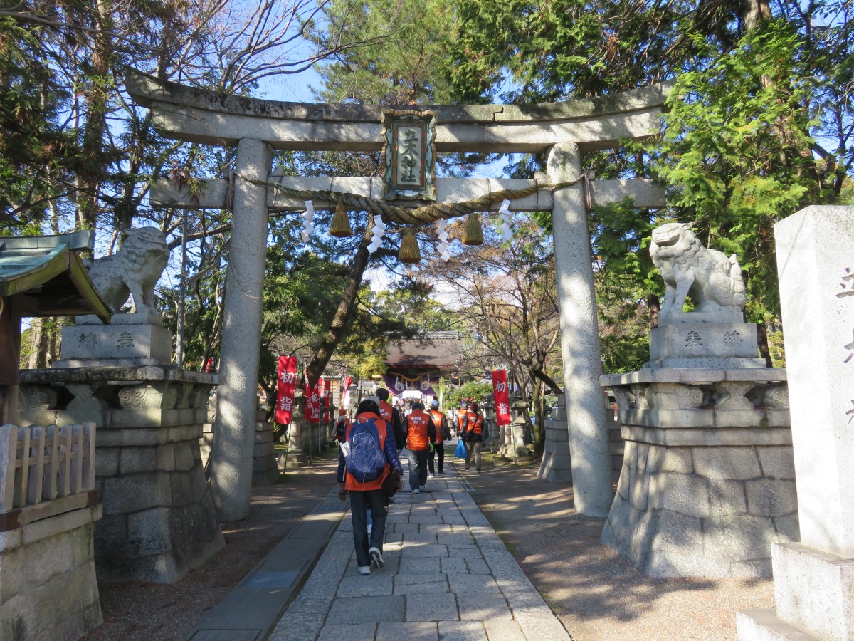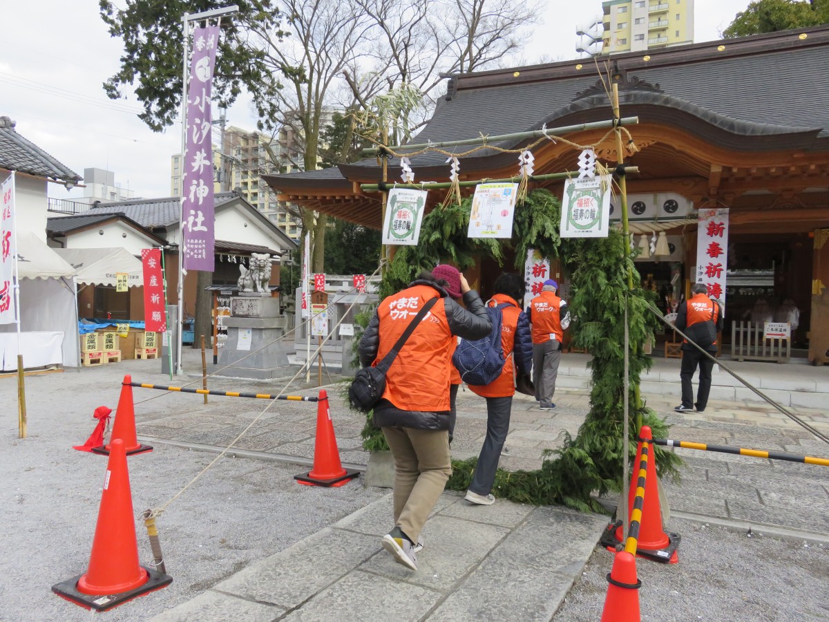 1月8日、気持ちのよい冬晴れのもと、令和3年度第2回やまだウォークを開催しました。 20人の参加者とともに、まだお正月の雰囲気が残る七福神ゆかりの社寺を、伊砂砂神社をスタートに草津市観光ボランティアガイドの案内と、スタンプラリーを楽しみながら約3.5km歩きました。普段はなかなか通らないような脇道を通ると、思いがけず素敵な風景に出会えたり、草津の街の魅力を再発見できるウォーキングとなりました。