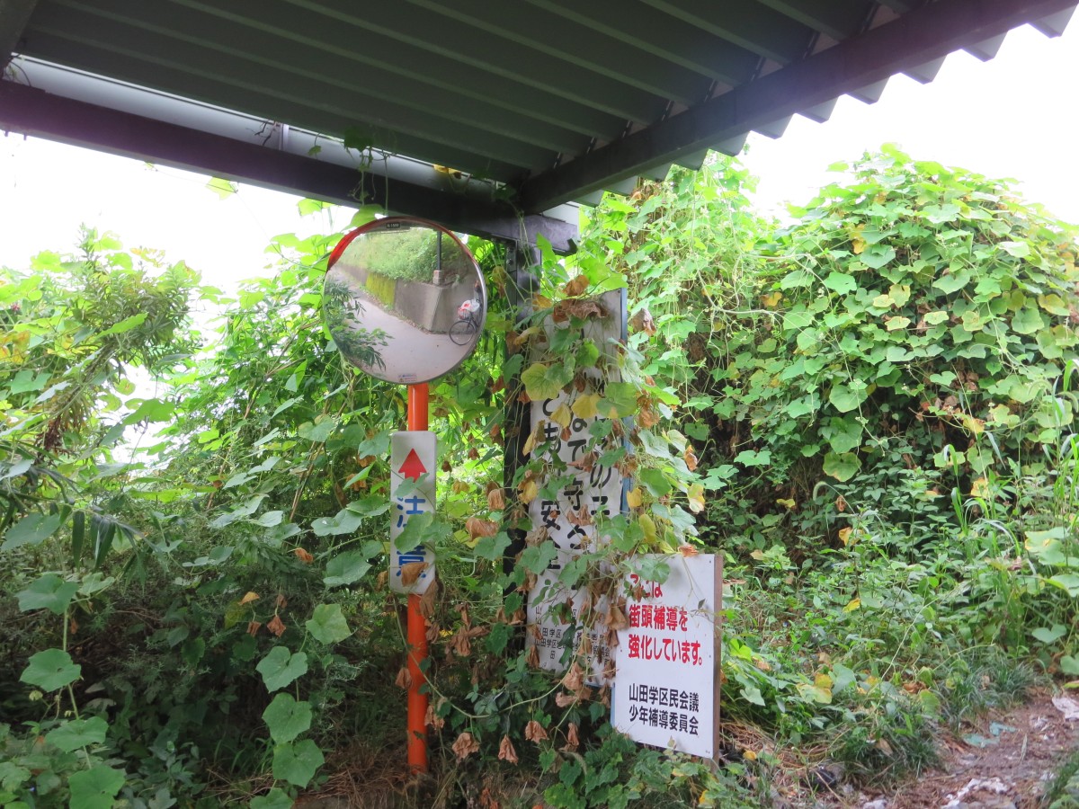 草に覆われた看板