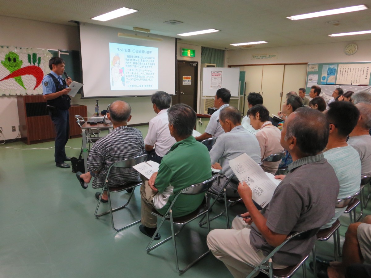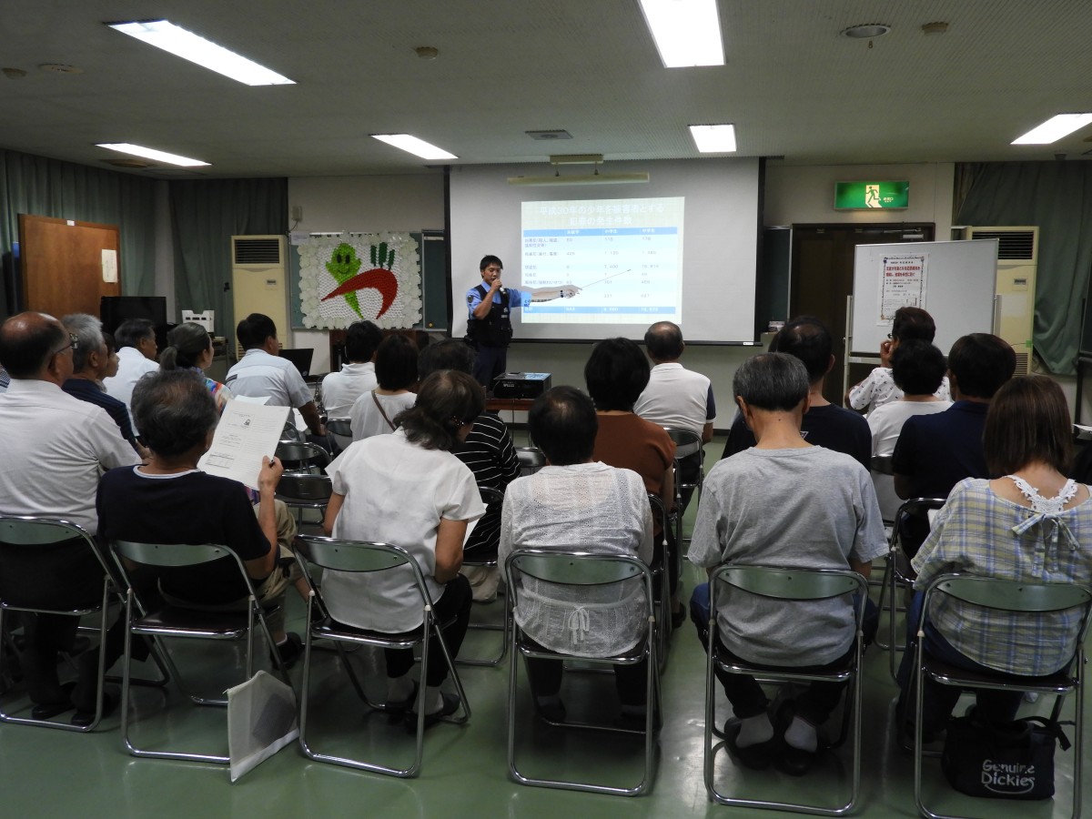 2019年度安心部会では、山田交番 青山巡査部長、大林巡査をお招きして防犯講演会を開催し、39名の参加がありました。