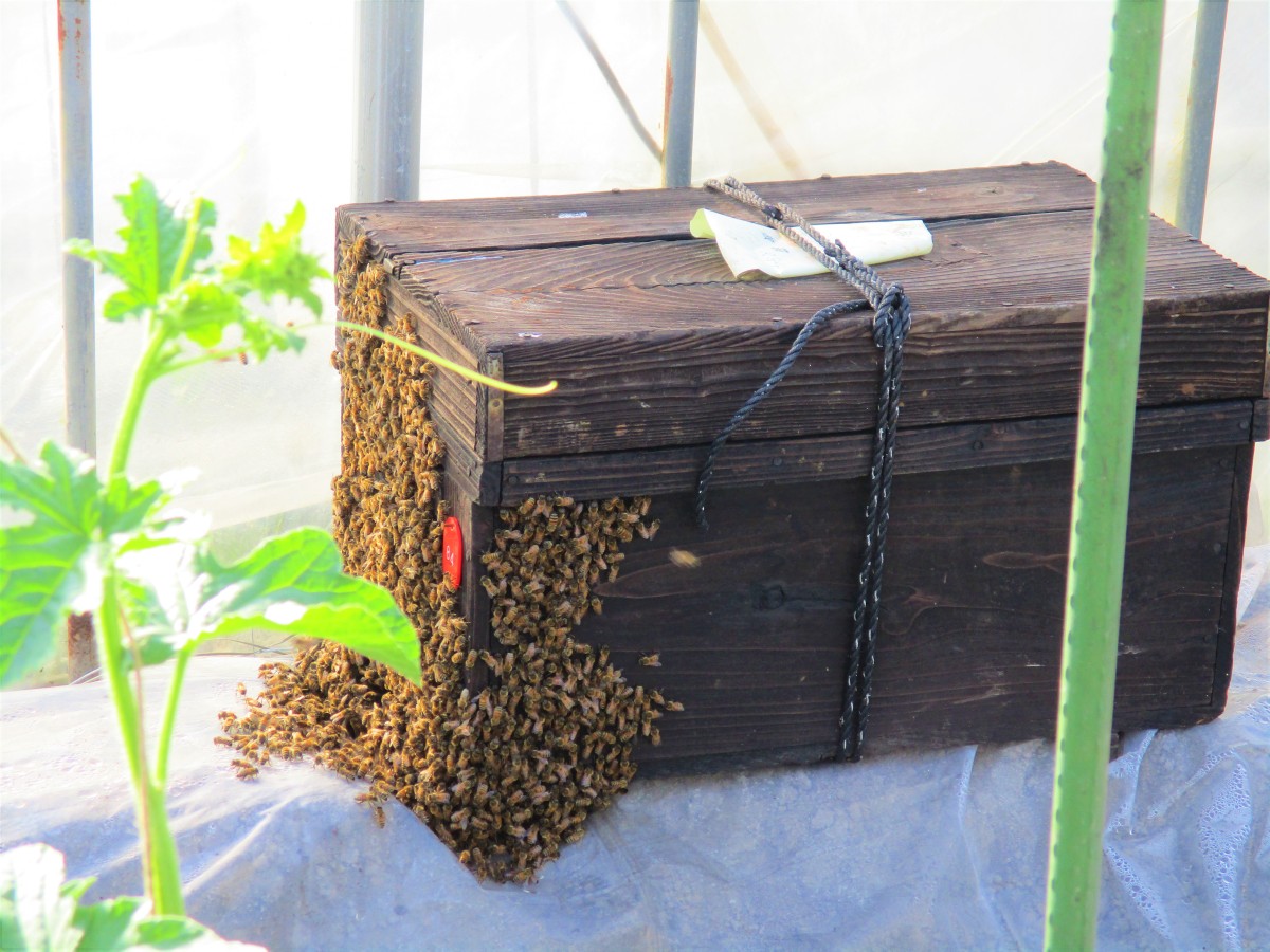 受粉の手助けの大事なミツバチ投入!