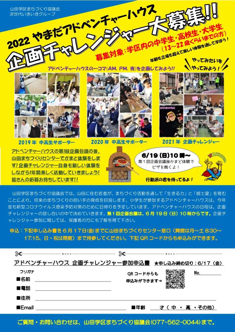 2022やまだアドベンチャーハウス 企画チャレンジャー大募集!!