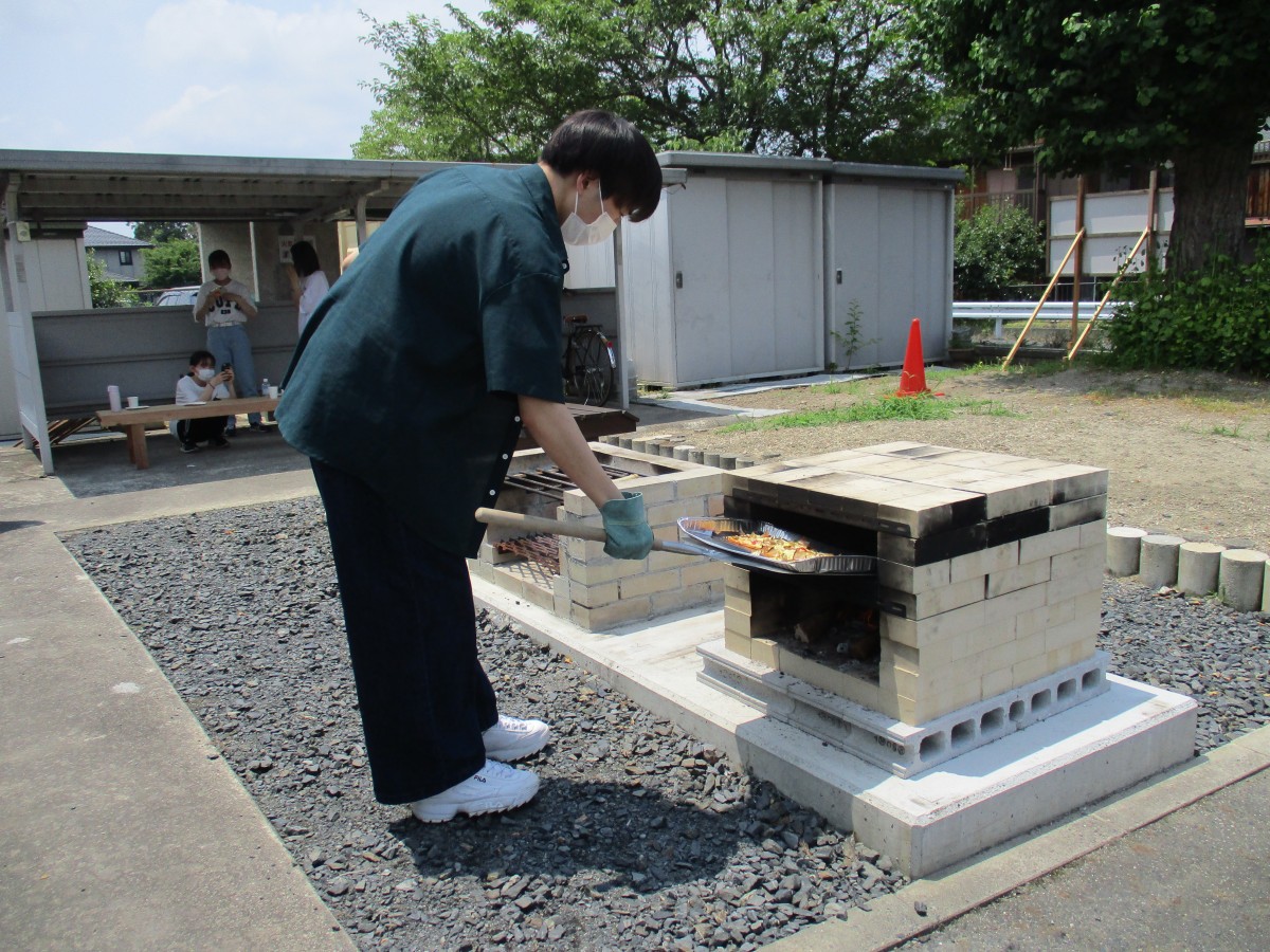 会議のあとは、かまど体験でピザを焼きました。かまど体験はアドベンチャーハウスで人気の企画になっています。