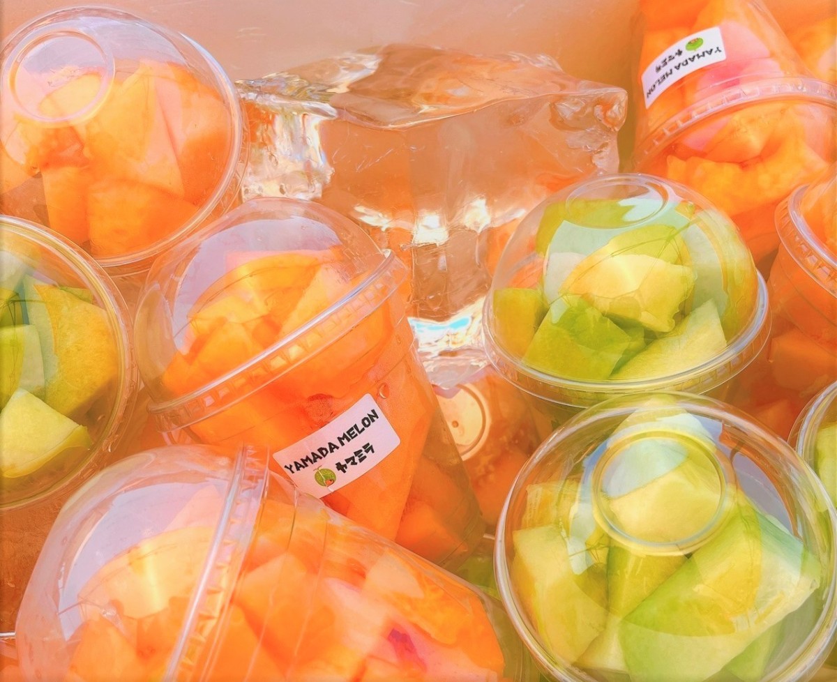 1カップ300g入で手軽に美味しくいただけるカットメロン、この暑さのせいもあり飛ぶように売れました。