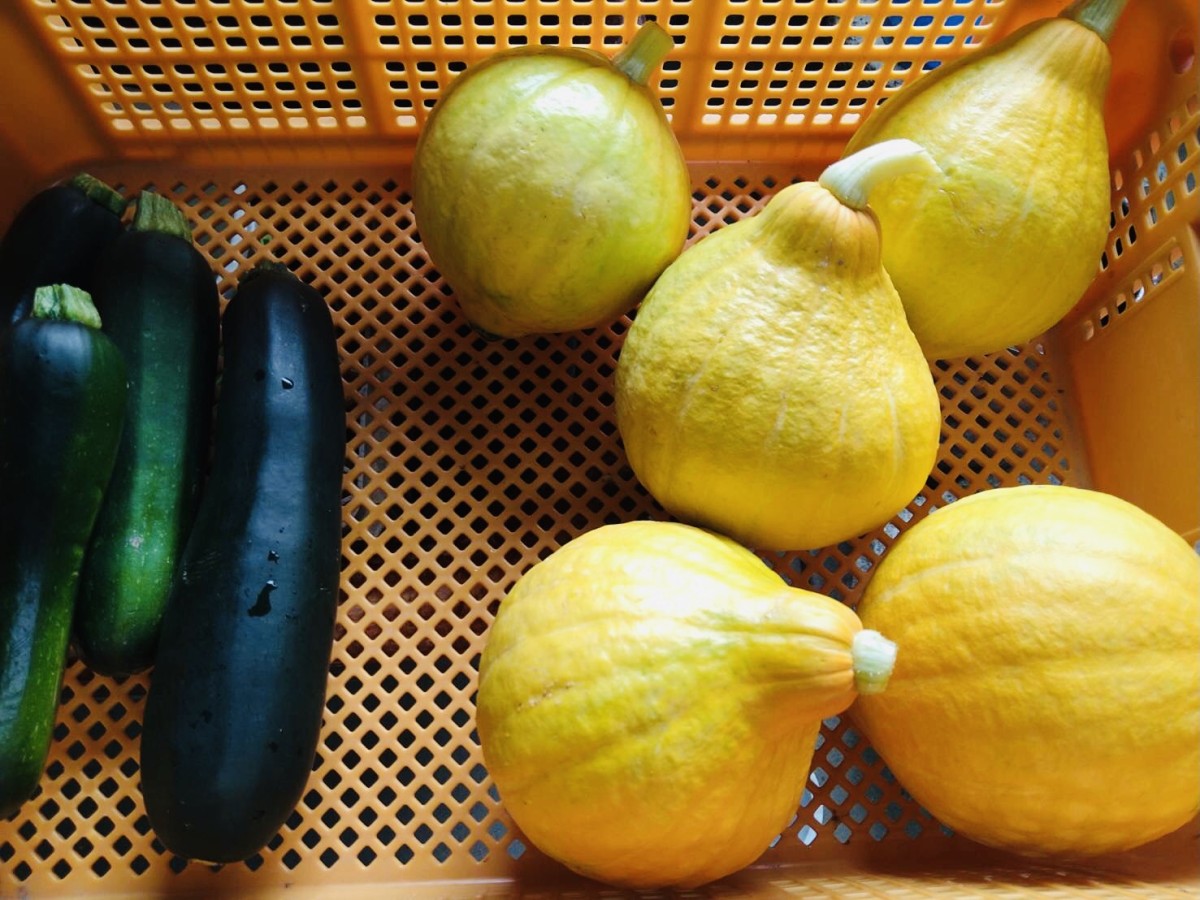 賀茂なす、ミニトマト、サラダカボチャ、ジャガイモ、なす、トマト、ピーマン、万願寺とうがらし、きゅうりなど山田の新鮮な野菜が並びます!