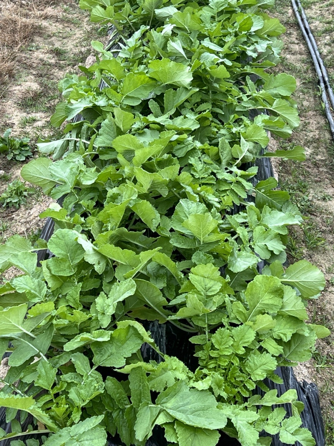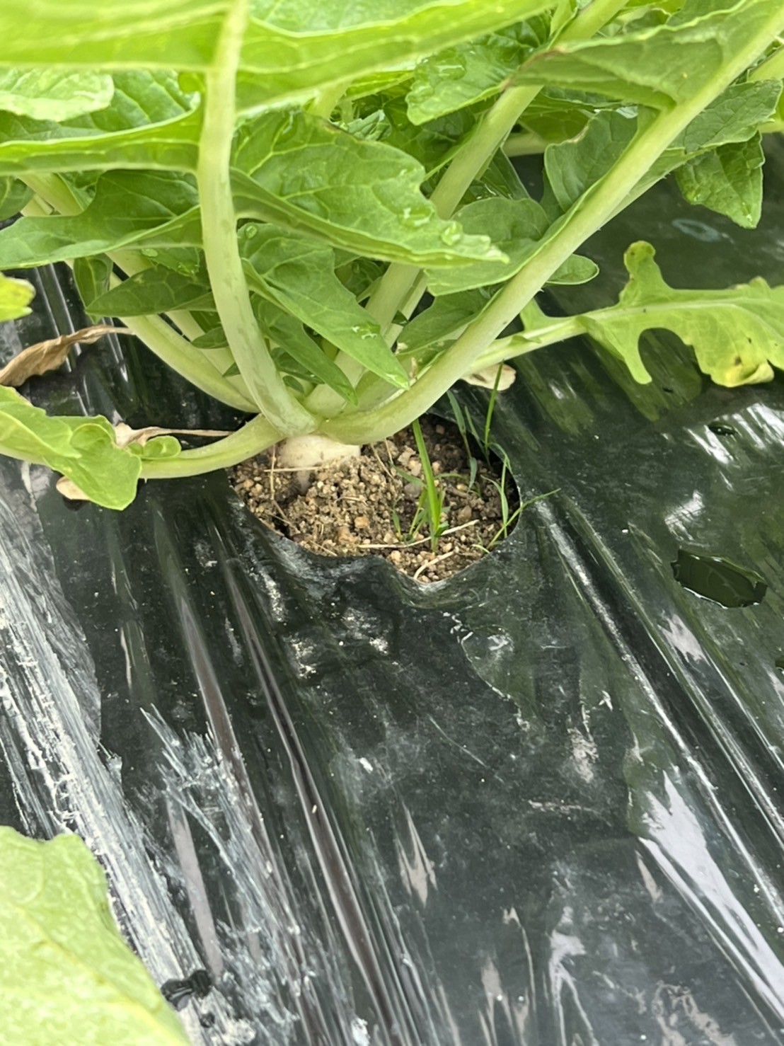 大きくなってきました! 暑い日が続いていたので、ねずみ大根すくすく成長中です! ただいま、葉の高さは30cmほど、大根はラディッシュくらいの大きさになっています! このまま成長がよければ収穫が少し早まるかも!?