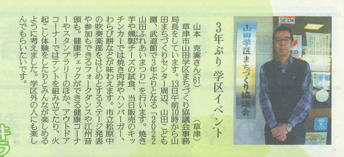 読売新聞しが県民情報に山田ふれあいまつりが掲載されました!