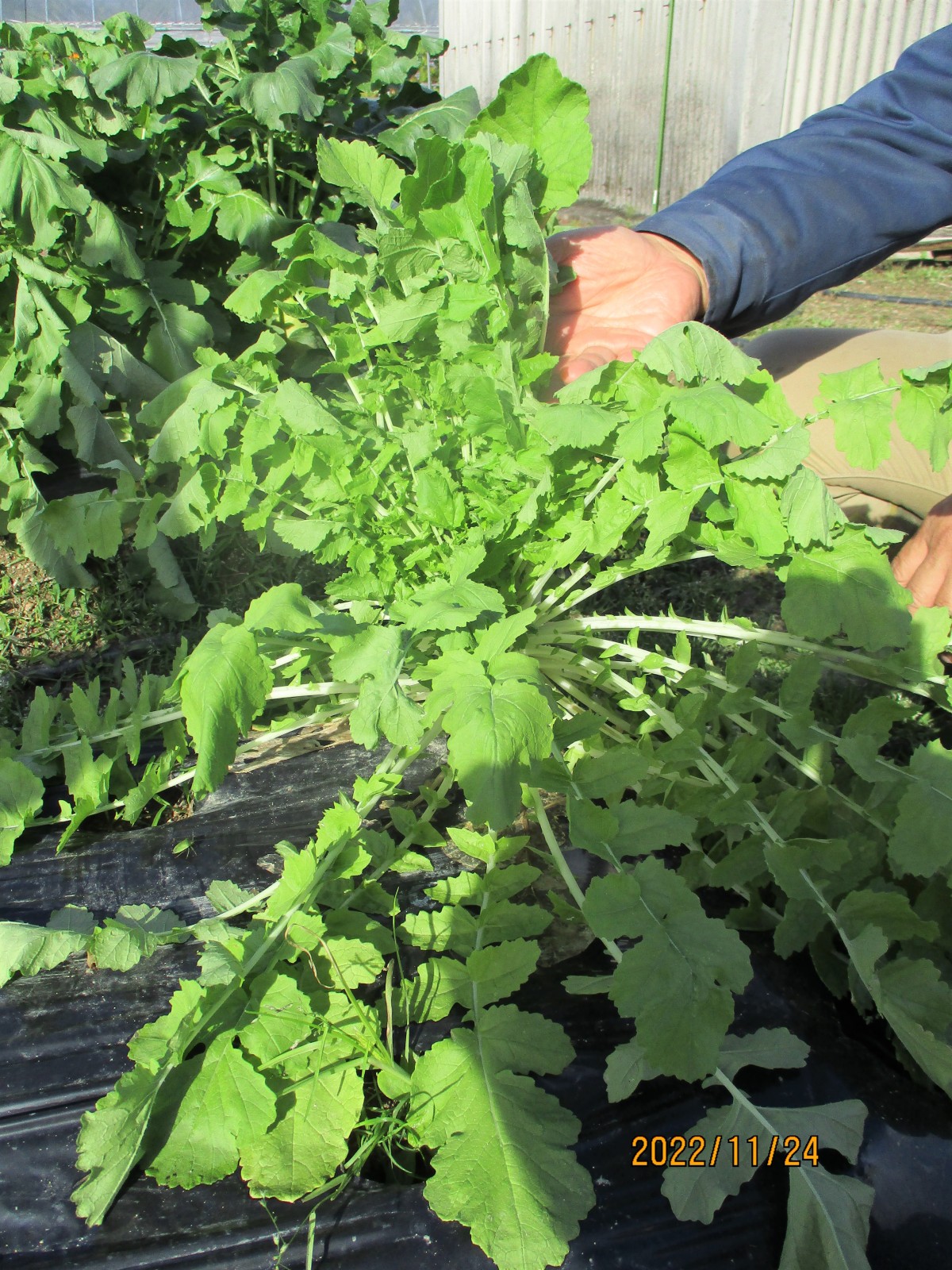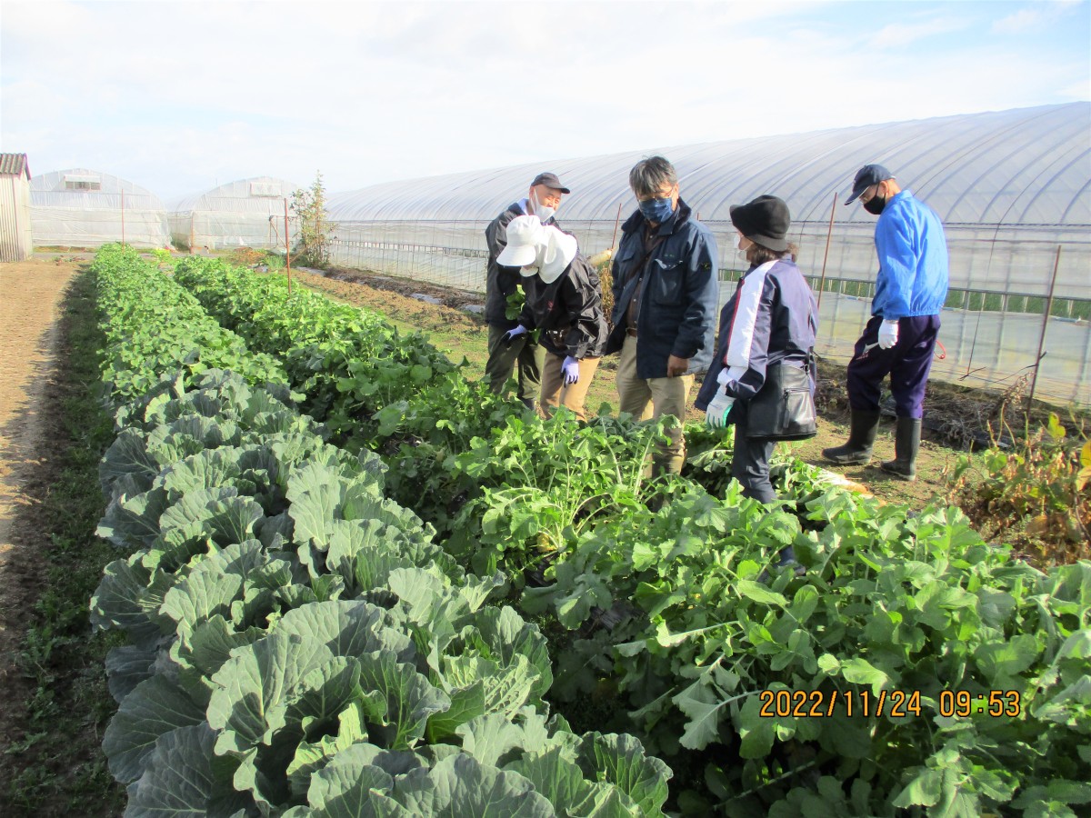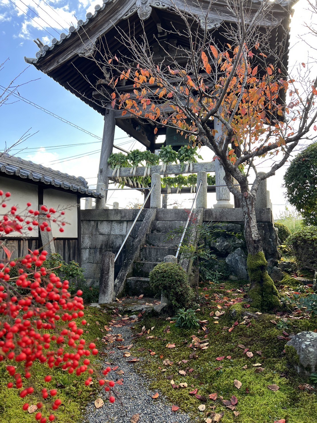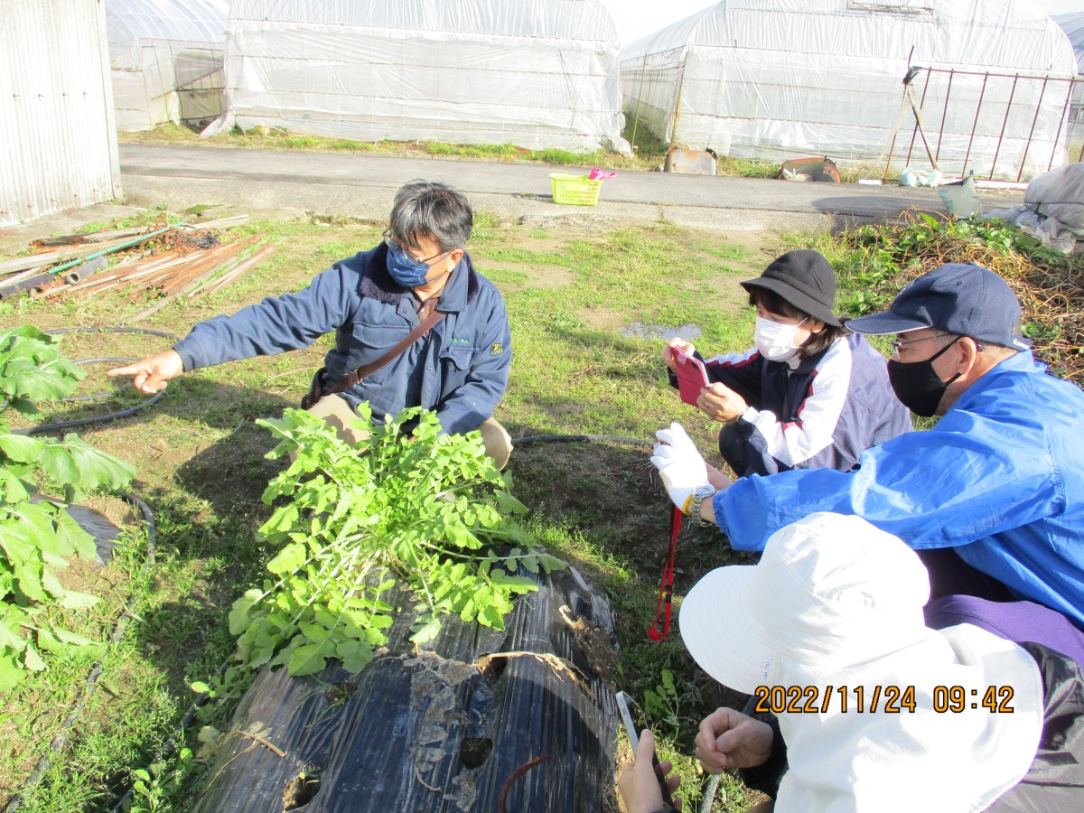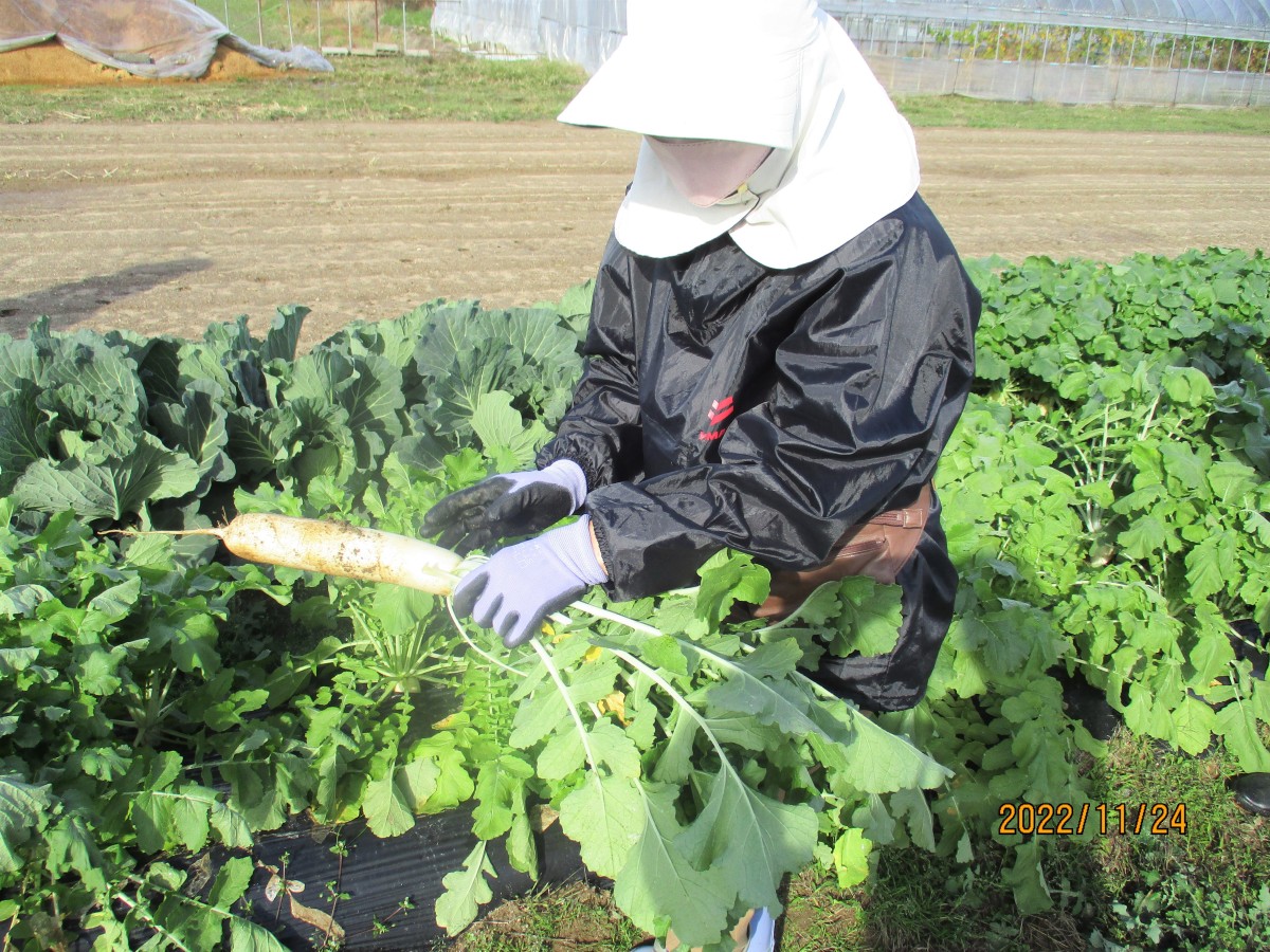 11月24日、ねずみ大根の収穫&干し作業を行いました。雨で日程がずれたため、少ない人数での開催となりましたが、お尻が丸くてかわいいねずみ大根150本をあっという間に収穫することができました。その後、まちづくりセンターへ持ち帰り、1本1本丁寧に洗います。大根の洗浄といえば冷たい水で手が凍えるイメージですが想像とは裏腹に、暖かい陽気で大根を洗う水も気持ちよく感じられました。洗い終わったねずみ大根は、先生から教わった、ほどけない結び方で4本組にしっかりまとめ、雨に濡れない場所で2週間ほど干して乾燥させます。干し場所は山田ならでは!? なんと鐘撞堂にたくさんの山田ねずみ大根が並びました!昔もこうして並べられていたようですが、今ではとても珍しくどこか懐かしさを感じる光景です。次回はいよいよたくあん漬け作業です!お楽しみに!