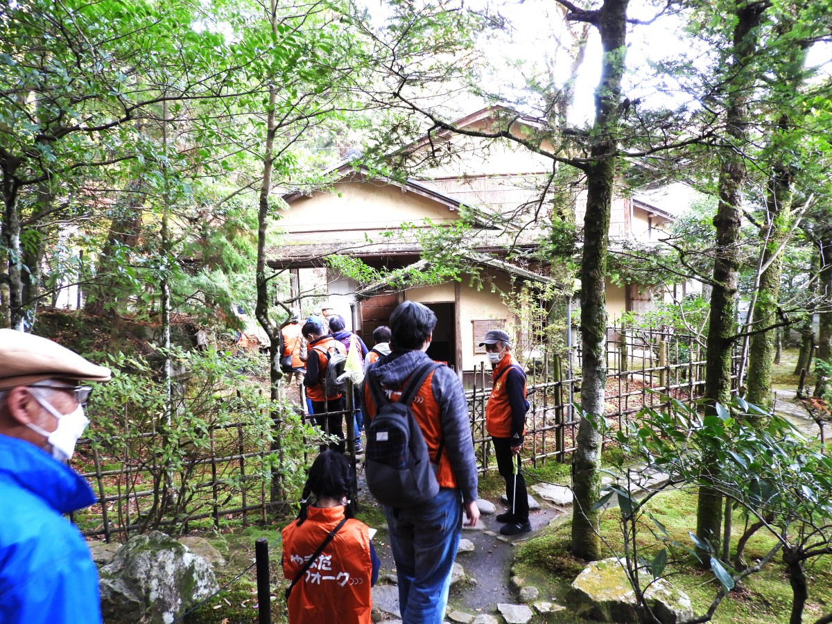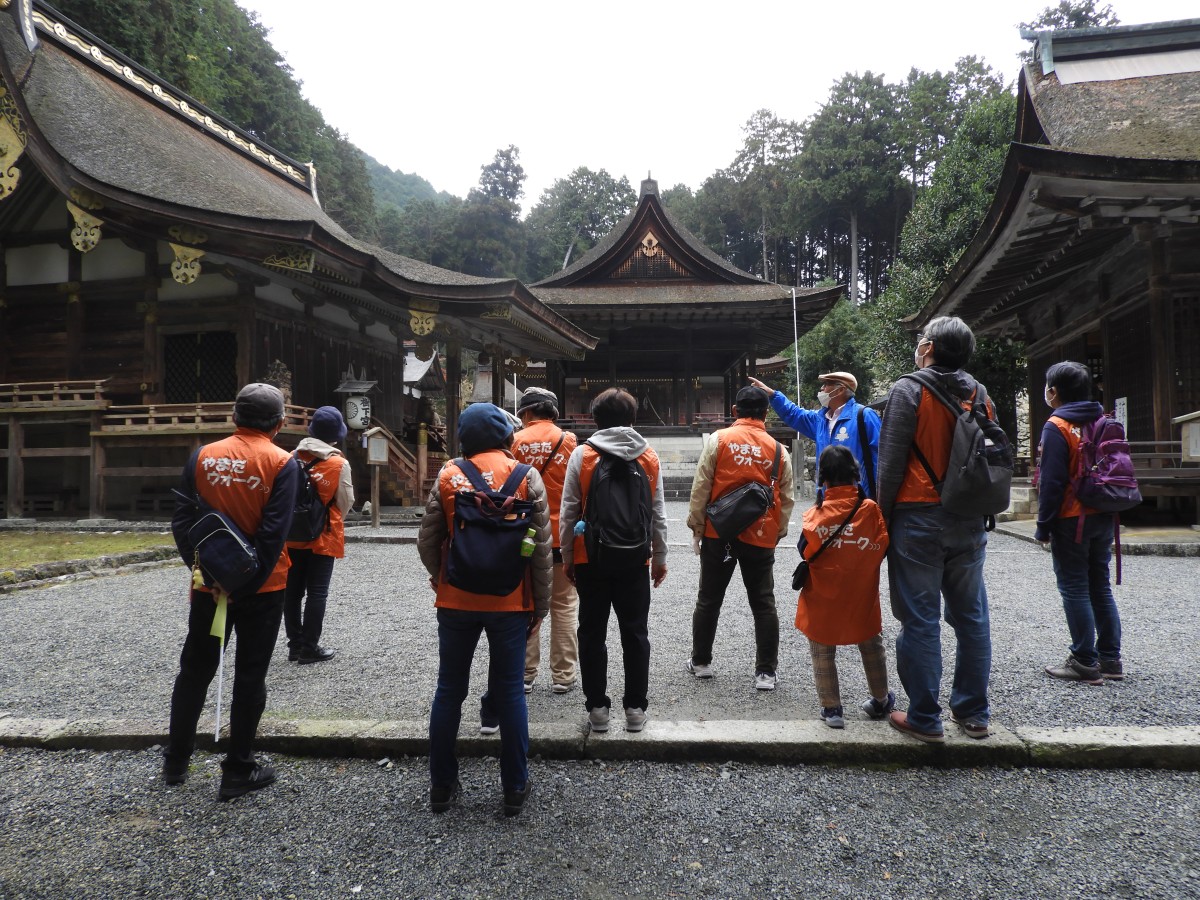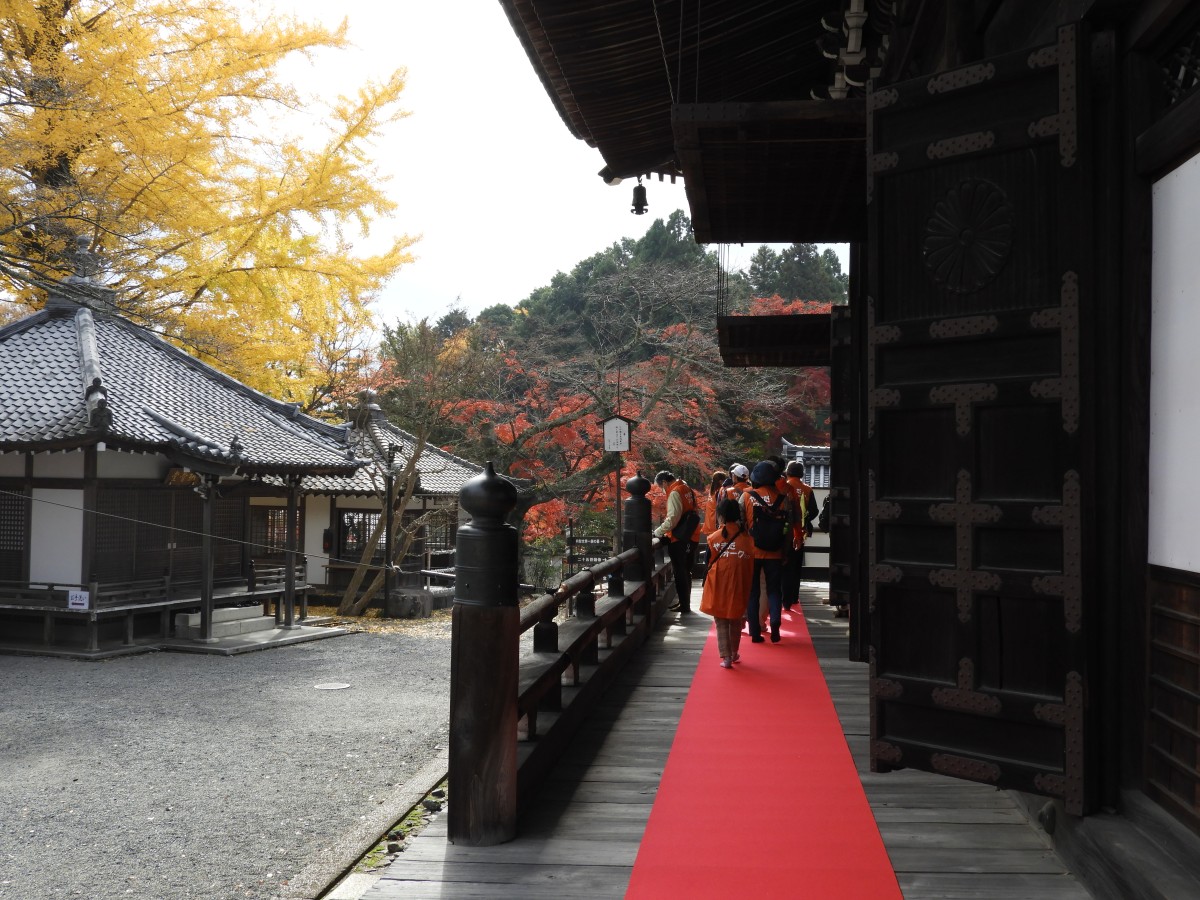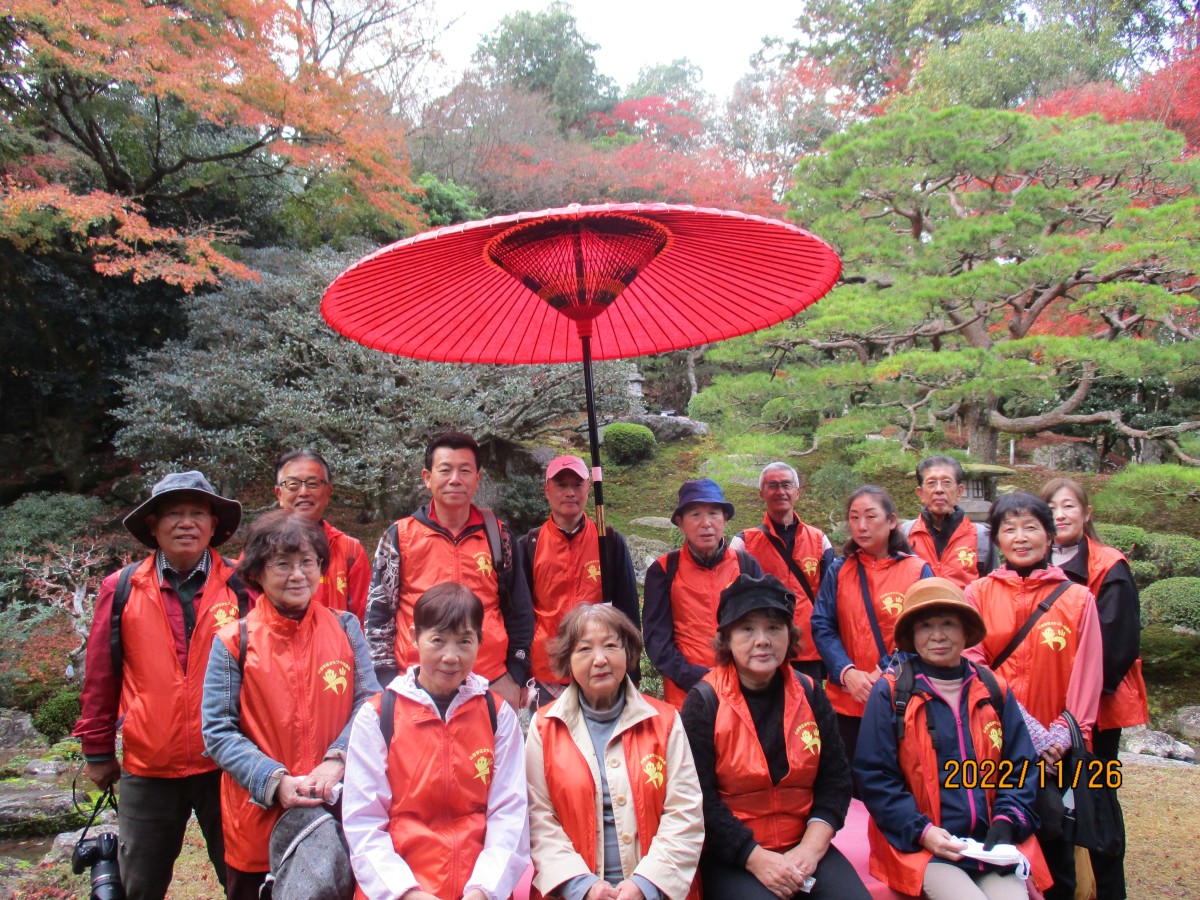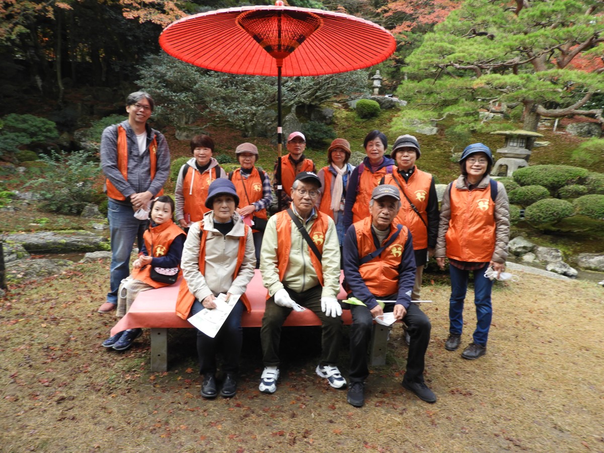 11月26日爽やかな天候に恵まれた中、第2回やまだウォークを開催することが出来ました。センターから大津市坂本までバスで移動後、国の重要伝統的建造物群保存地区を歴史を味わい楽しんできました。出発前、坂本地区をこよなく愛するボランティアガイドさんから、坂本界隈の歴史のレクチャーを受けた後、立ち寄った「旧竹林院」「日吉大社」「西教寺」までの道のりを神仏習合や戦国武将などまさにタイムスリップしたような感覚で歴史を味わいながらのウォーキングは参加者も興味をそそられた様子でした。距離は4Kmと意外と短いわりには上り坂が多い中、小学生から年配の方々全員が気持ちの良い汗をかく事ができました。晩秋の中、歴史ある門前町と赤や黄に染まった木々の景色の中で身も心も清められたまち歩きとなりました。皆さんお疲れさまでした。