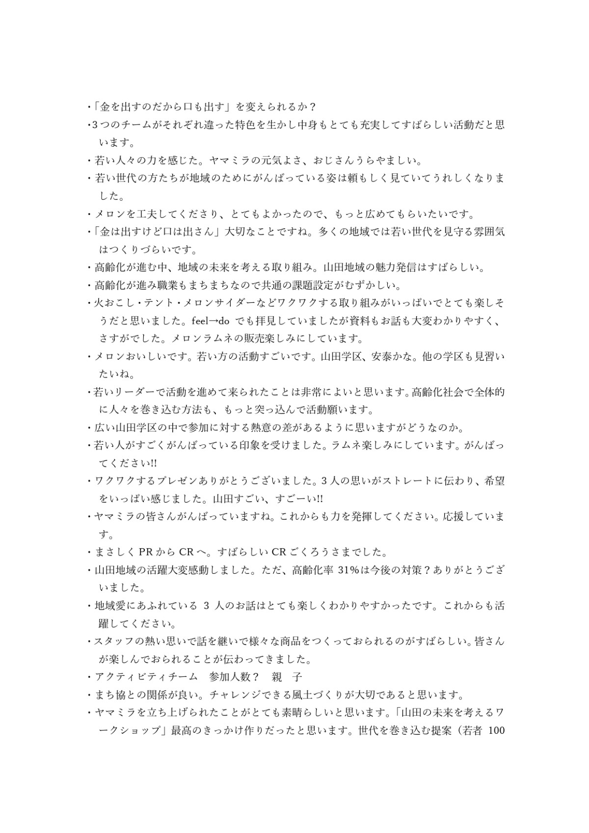 会場の皆さんからのプレゼンの感想です!たくさんありがとうございます。