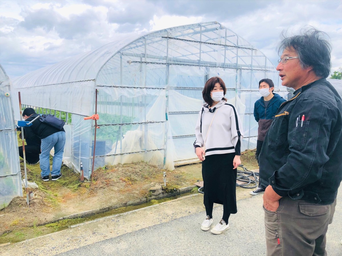 4月16日、第1回ヤマミラ定例会後、メロンまつりのために農家さんを訪問しました。 ビニールハウスを見学させてもらい、メロンの成長を見てきました。 3月はじめに植えられたタカミ緑のメロンです。現在ミツバチが投入されて受粉の手助けをしている段階です!