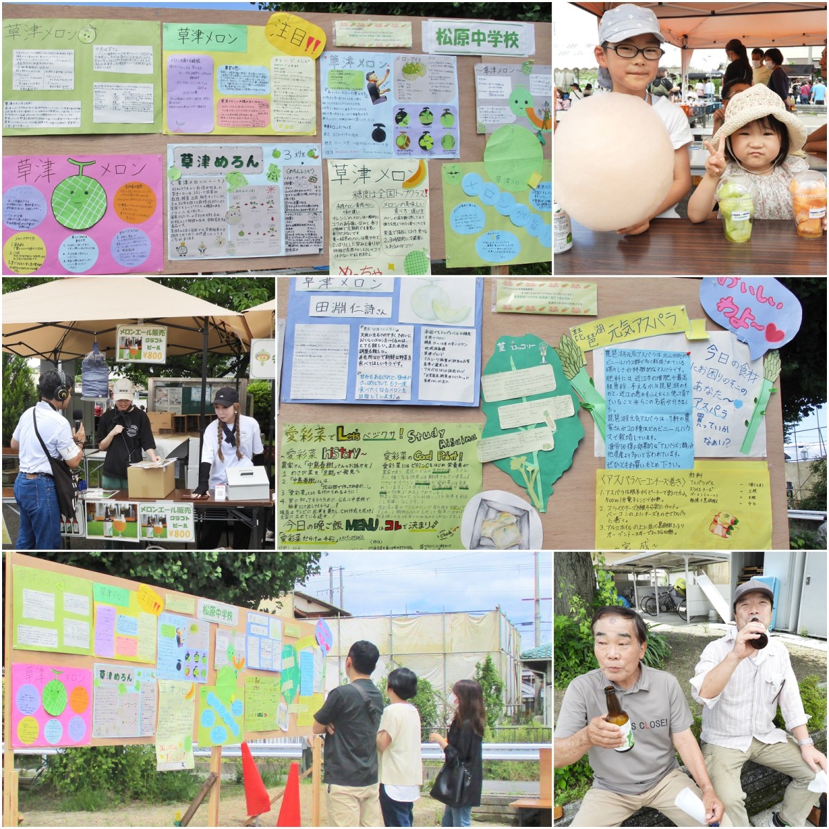 朝10時のオープニングを待ちかねた多くの人たちが新商品のメロンシャーベットや、お手頃価格の人気商品カットメロンの列に並んでいました。購入後、すぐにスプーンですくっておいしそうに食べる子どもや、カットメロンをほおばる人の笑顔が見えました。今回で3度目となるメロンエール(クラフトビール)や昨年に引き続き立命館大学の学生団体BohNo(ボーノ)による山田のメロンを使った一品も人気でした。キッチンカーをはじめ、野菜販売、メダカの頒布会、健康測定、午後にはメロン販売と大いに盛り上がった一日になりました。